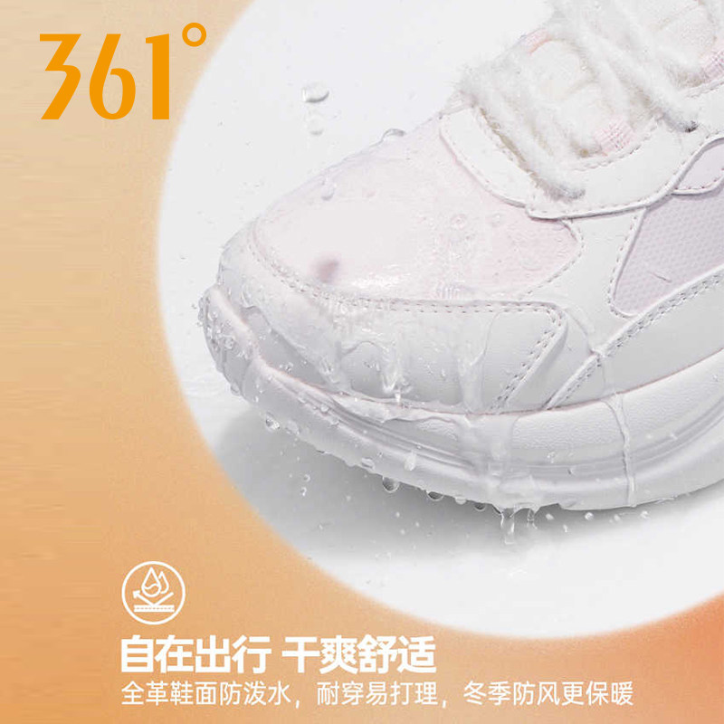 皮面防水鞋 加毛保暖雪地大棉鞋 子 冬季 361灵狐2.0女高帮加绒运动鞋