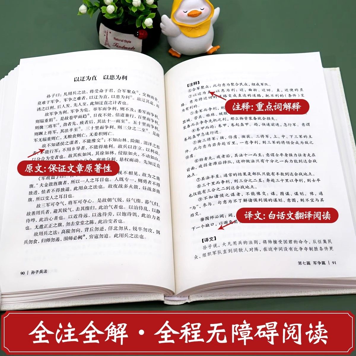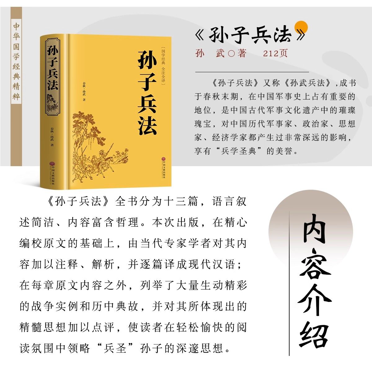 孙子兵法正版 原著全套原版 原文白话文译文注释成年版 三十六计小学生儿童推荐 无删减 青少年版 36计国学古典文学名著军事兵书 精装