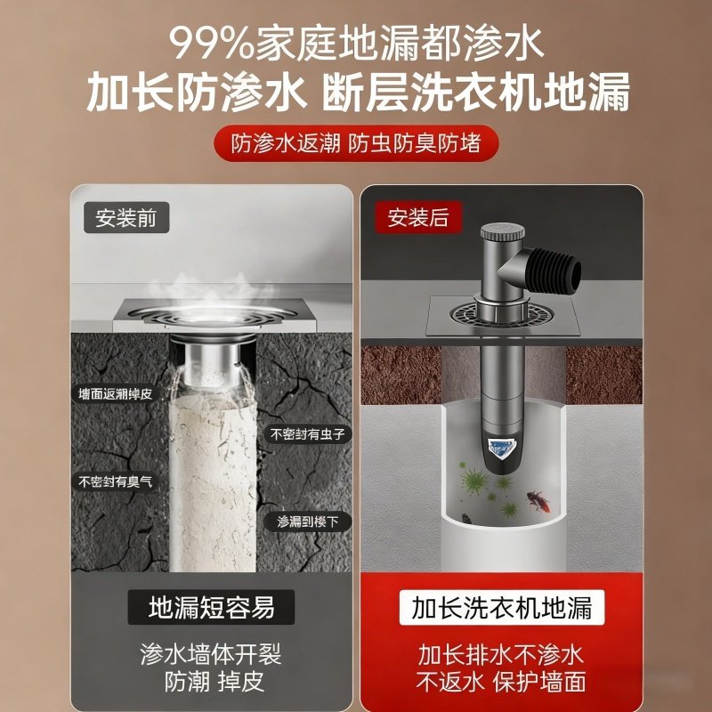 洗衣机下水管三头通地漏双排水专用接头排水管道二合一防臭防溢水