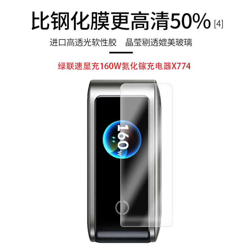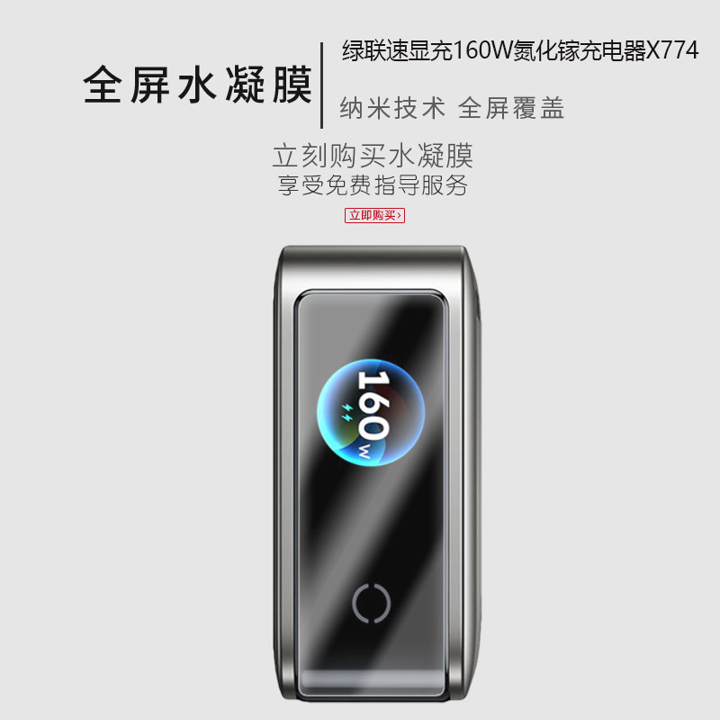 适用于绿联速显充160W氮化镓充电器X774全屏水凝膜高清防刮摔防指纹反光蓝光护眼非钢化磨砂防窥