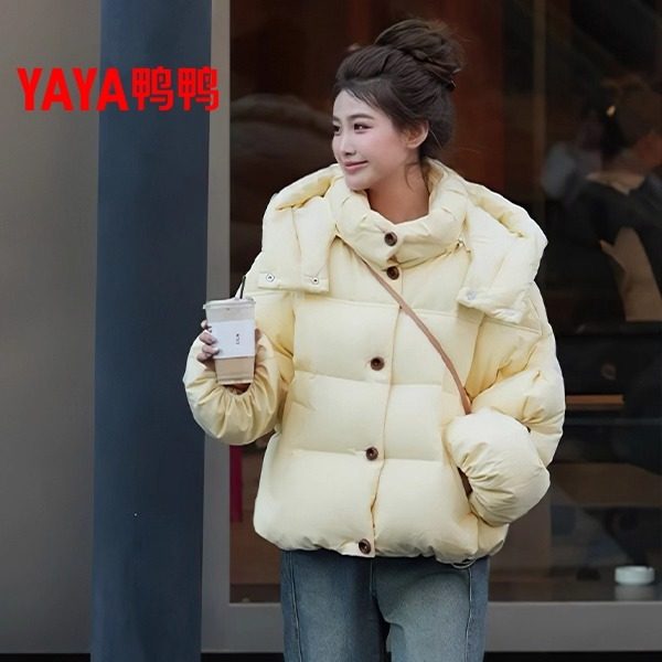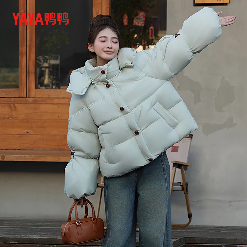 休闲宽松保暖连帽短款 鸭鸭羽绒服女款 时尚 新款 面包服 2025年冬季