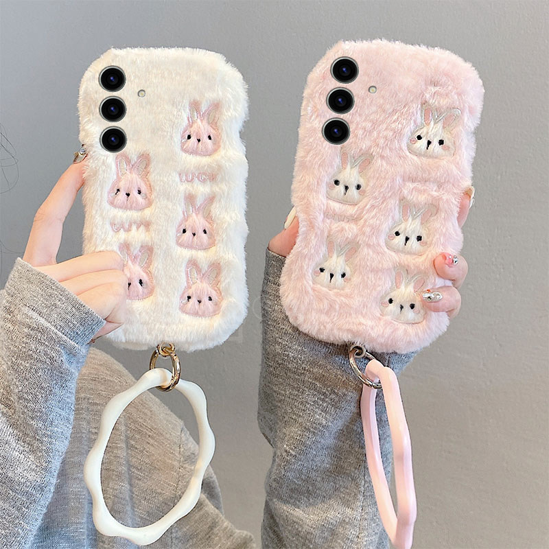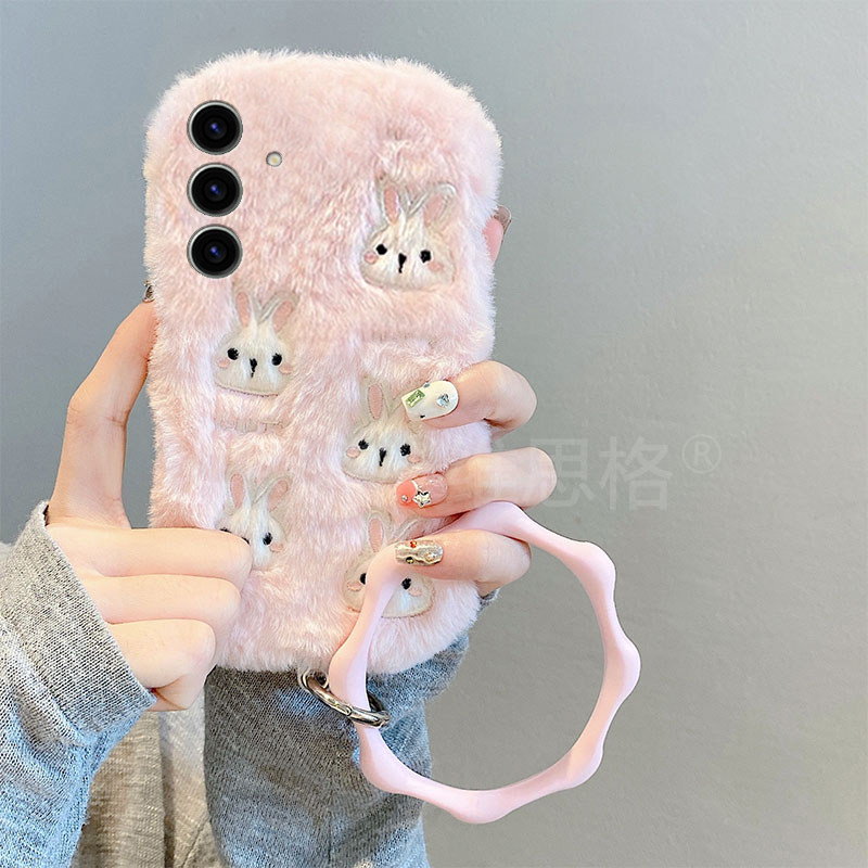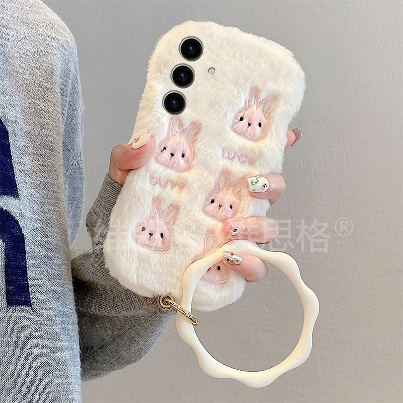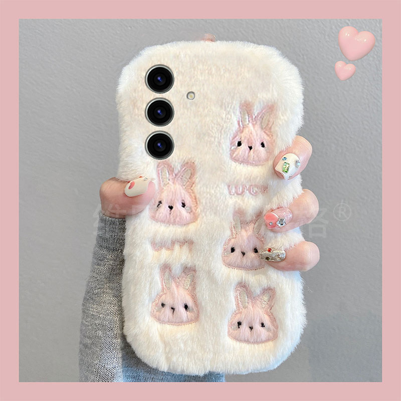 粉色刺绣兔子适用三星s25edge手机壳s24plus可爱s23 s20ultra毛绒s10 note20手环 十s22卡通s21fe秋冬季