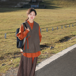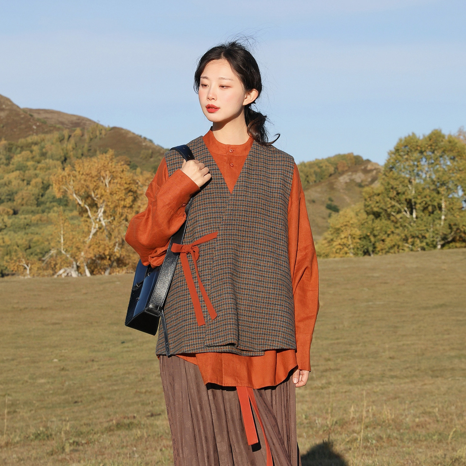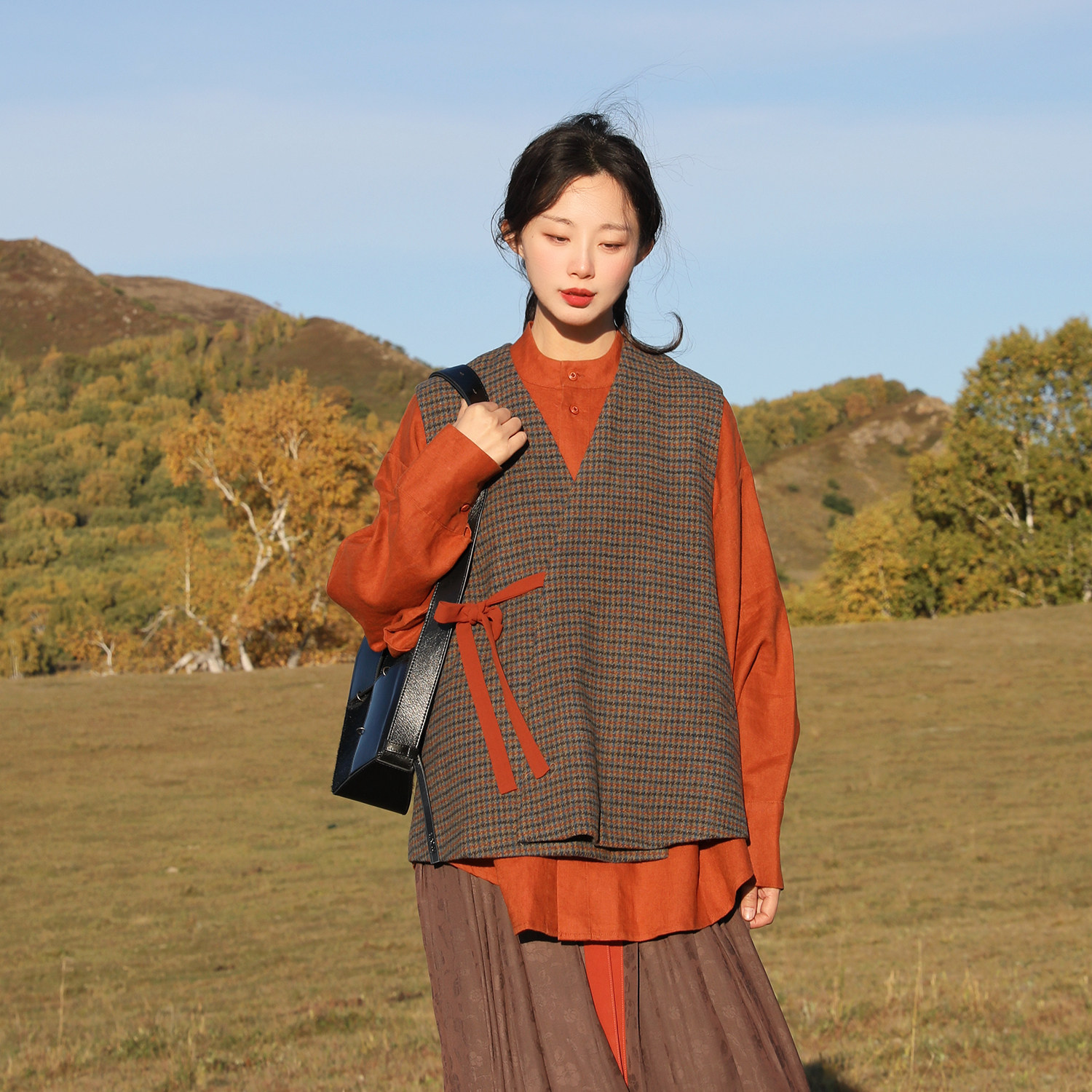 素原创日常羊毛比甲外穿女款 汉元 浣溪沙无领对穿交马甲 谜阿凰
