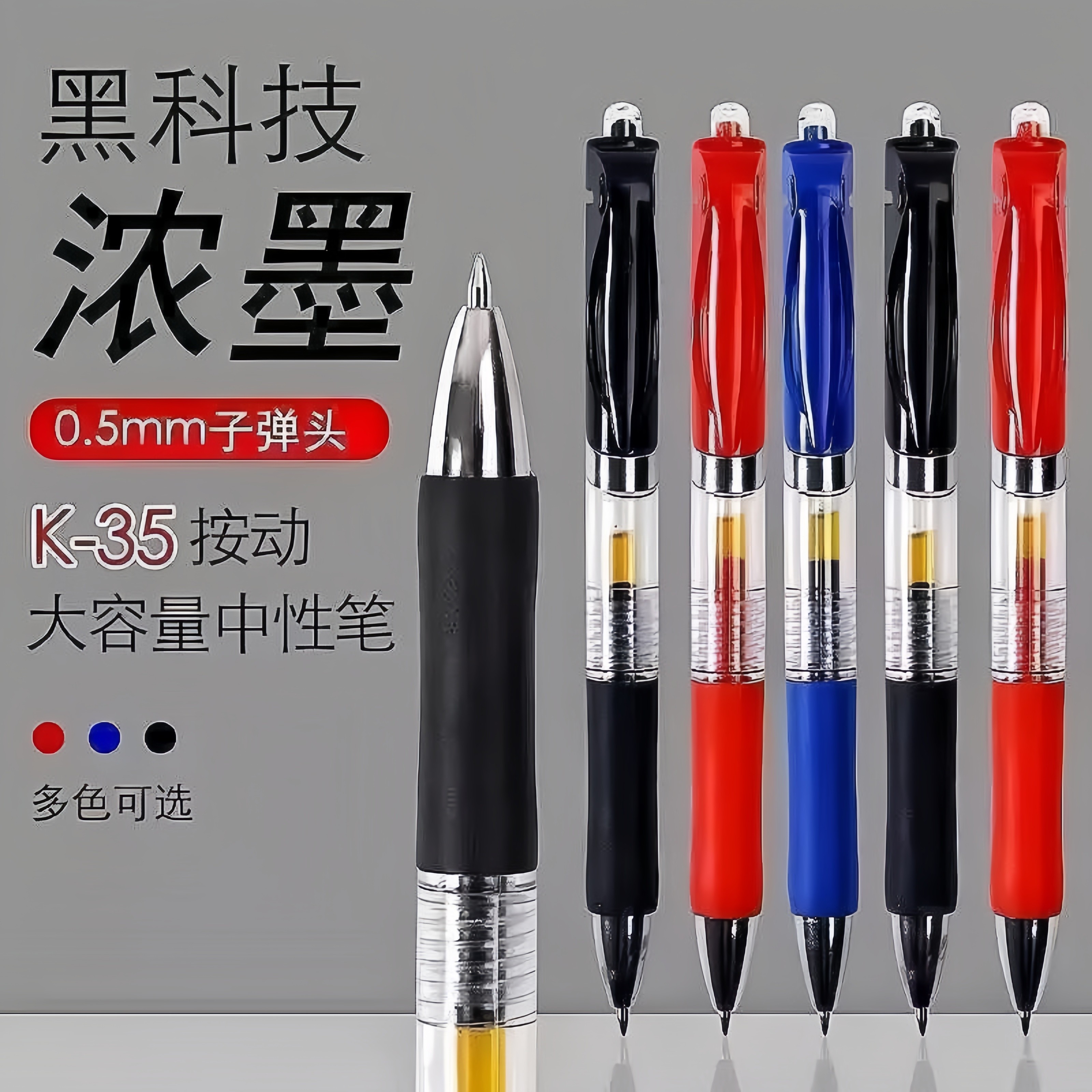 中性按动笔0.5mm文具简约子弹头黑笔芯圆珠会议签字笔学生考试笔