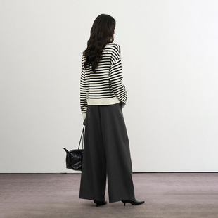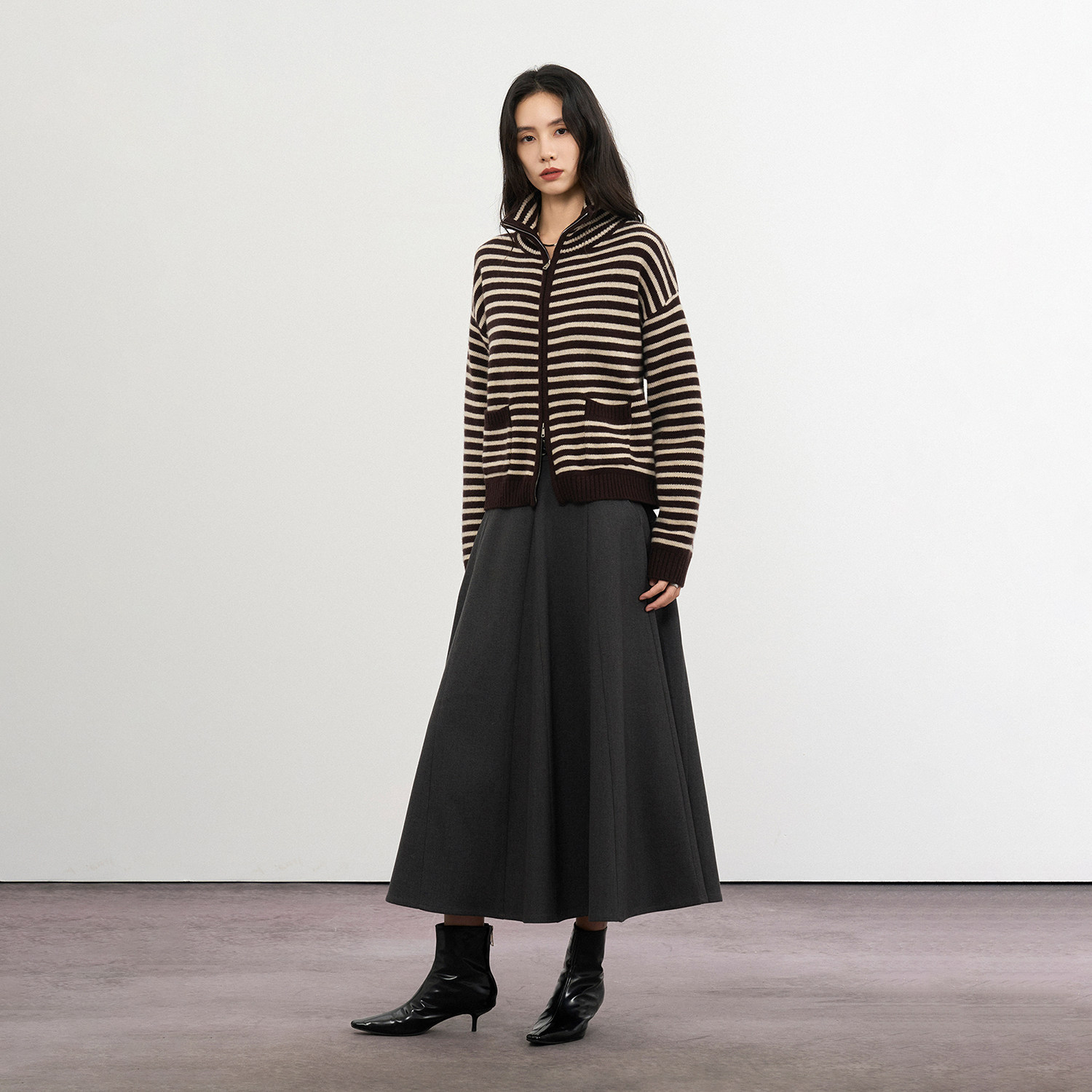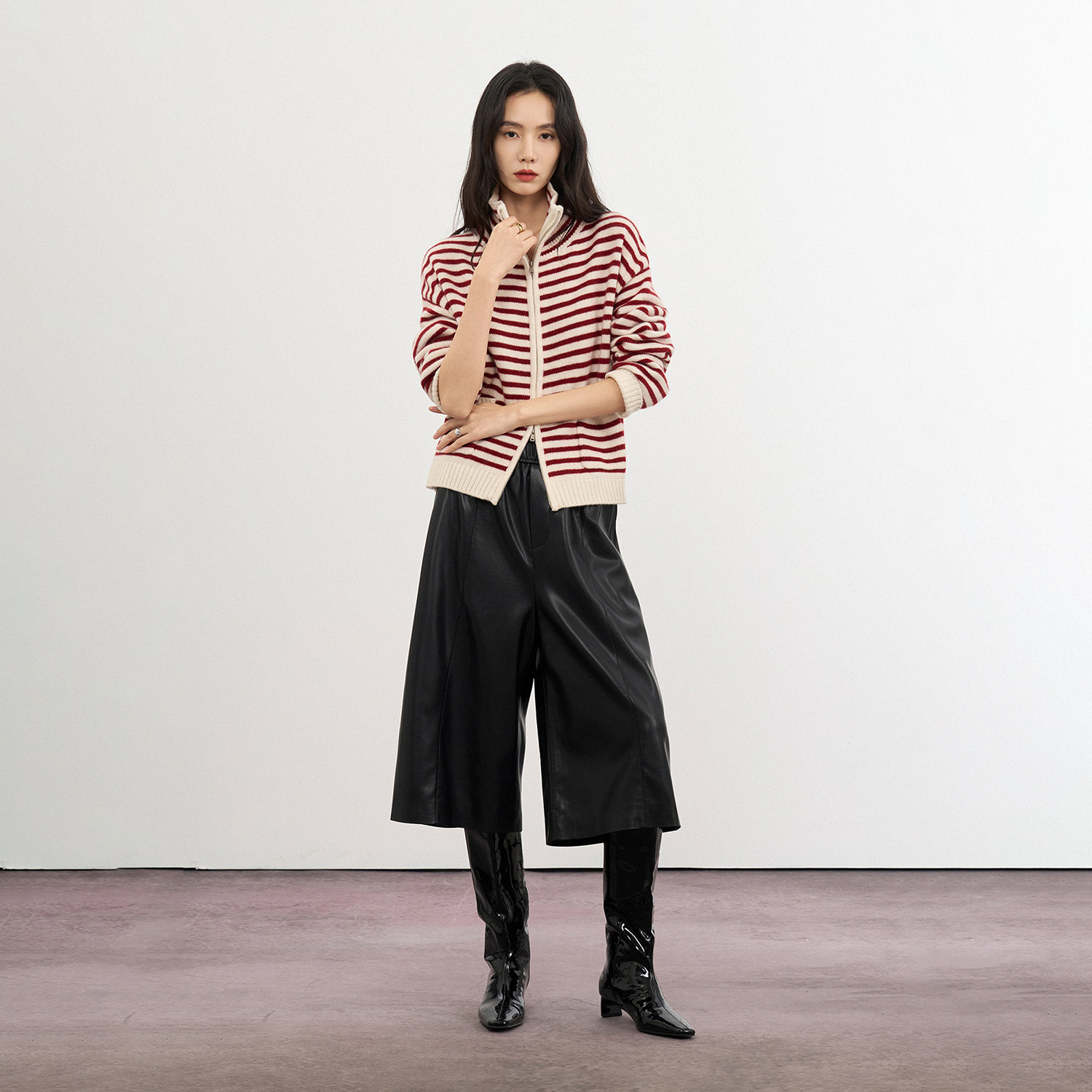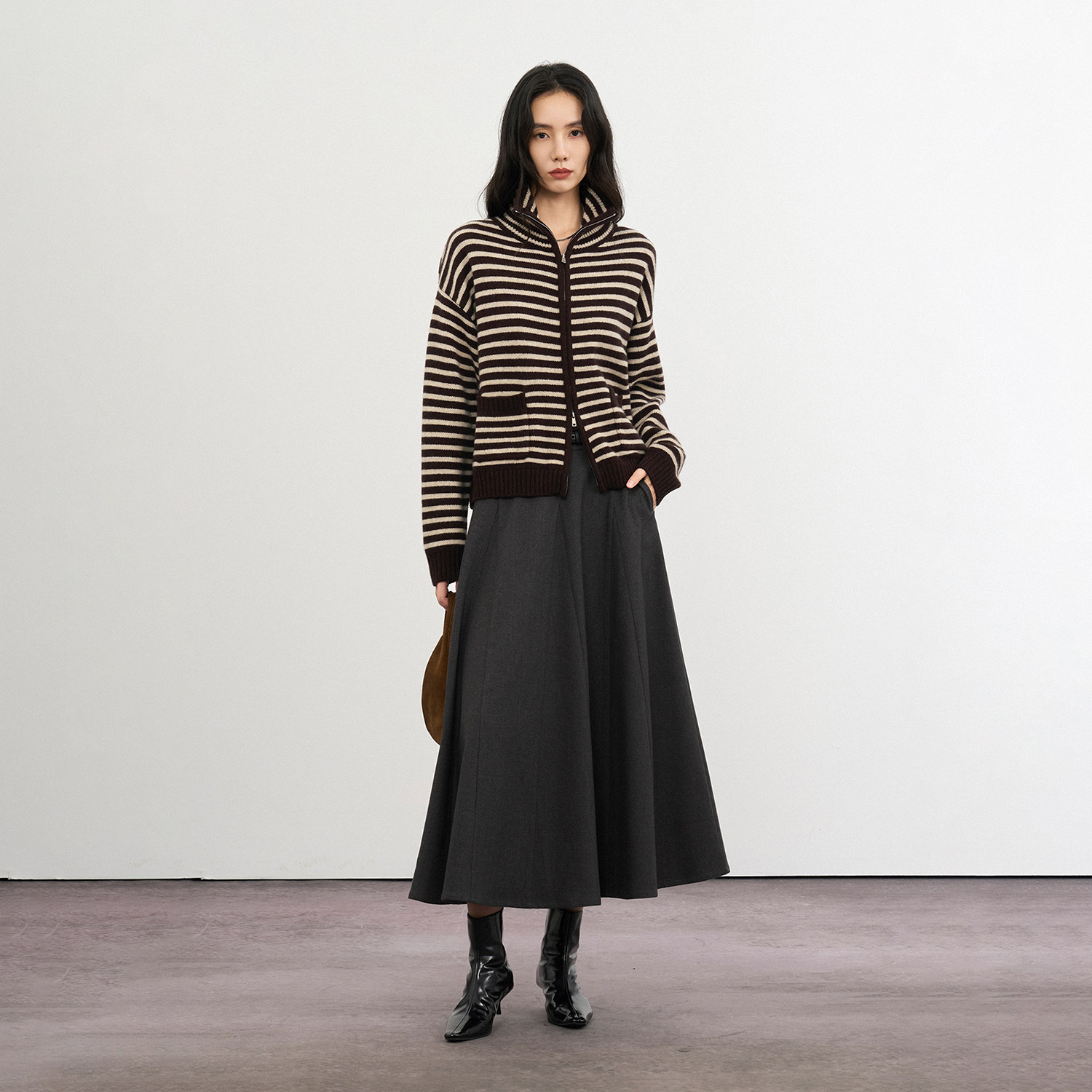 CLMX复古条纹立领开襟长袖 女 毛衣外套100%羊毛纱线秋冬条纹针织衫