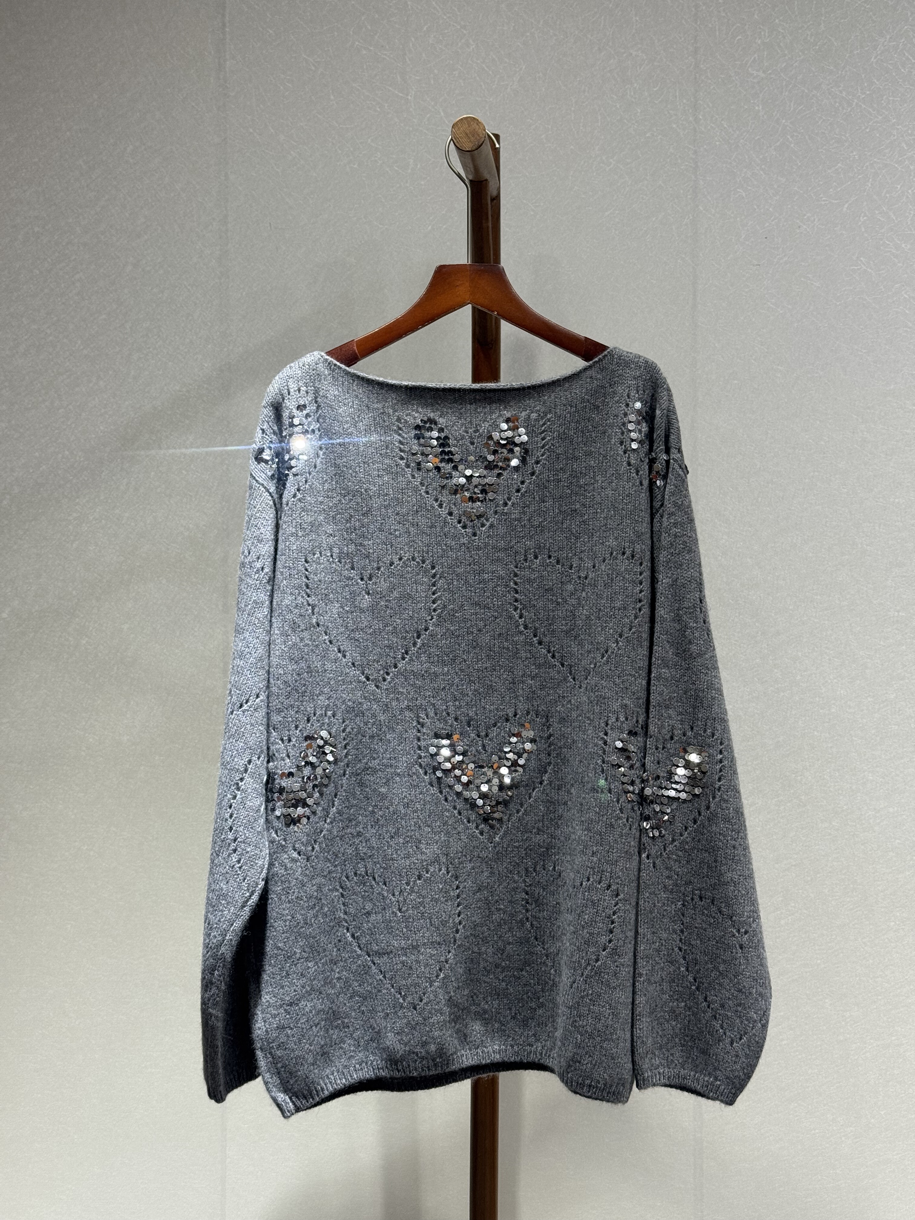 爱心珠片大牌牦牛绒毛衣7120 百搭气质 原创设计 欧韩时尚