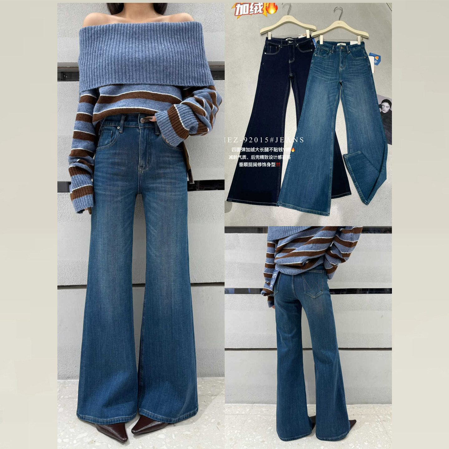 三种裤 加绒加长版 长 女秋冬款 高腰宽松百搭显瘦喇叭裤 微喇牛仔裤
