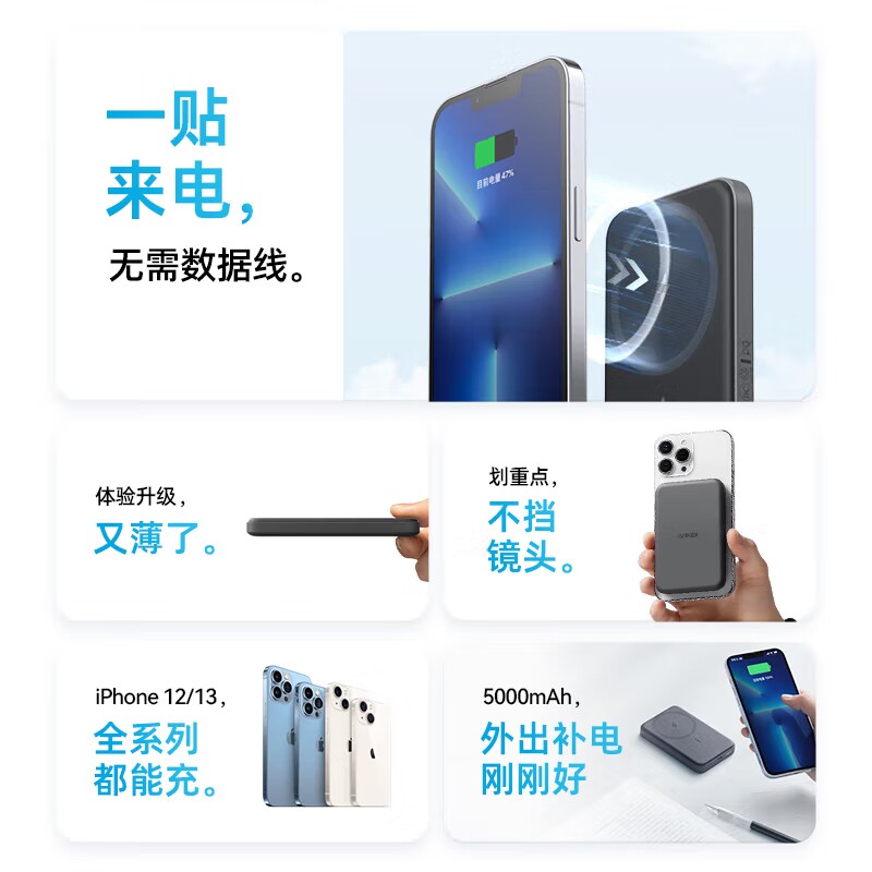 ANKER安克621磁吸无线5000mAh大容量充电宝便携移动电源迷你a1610