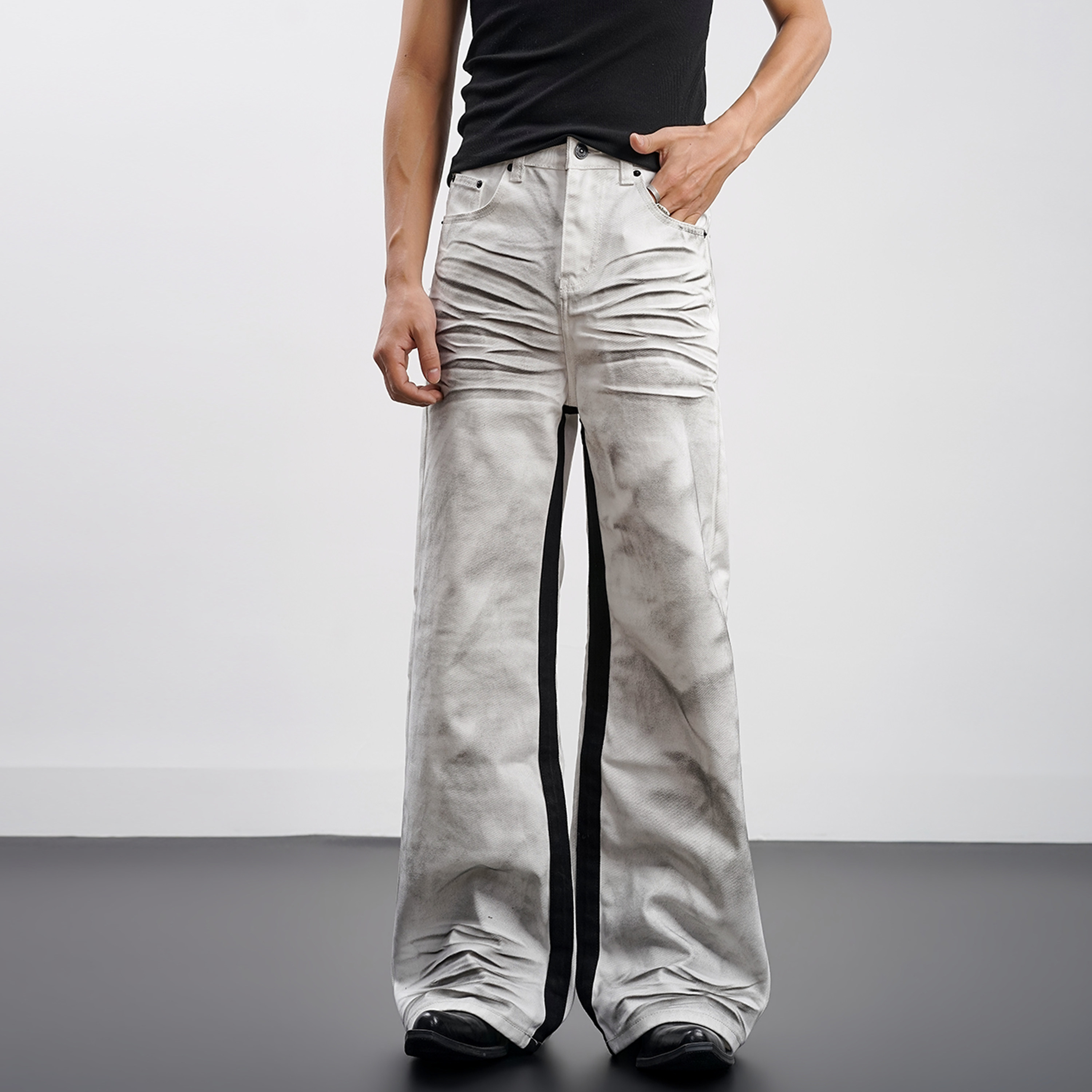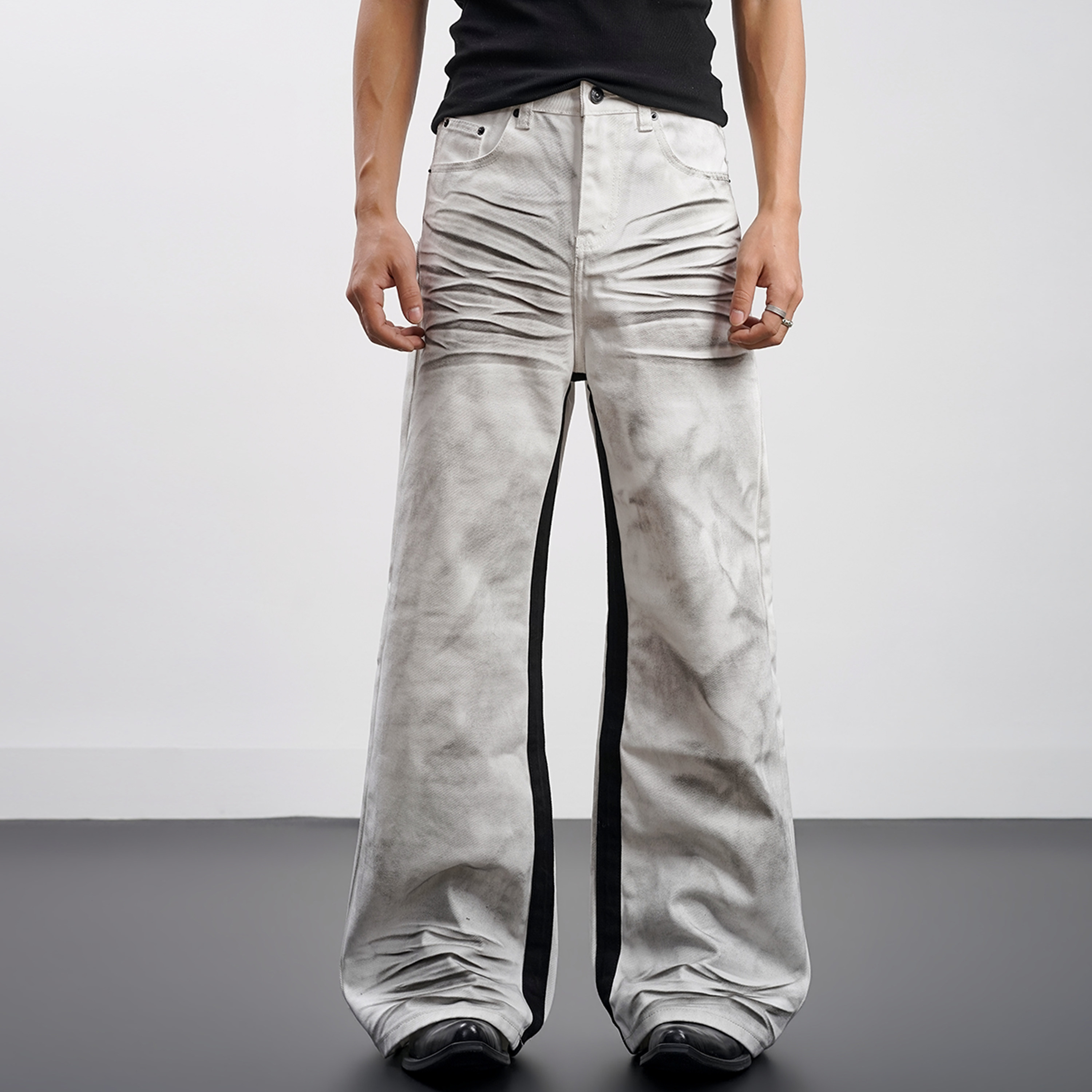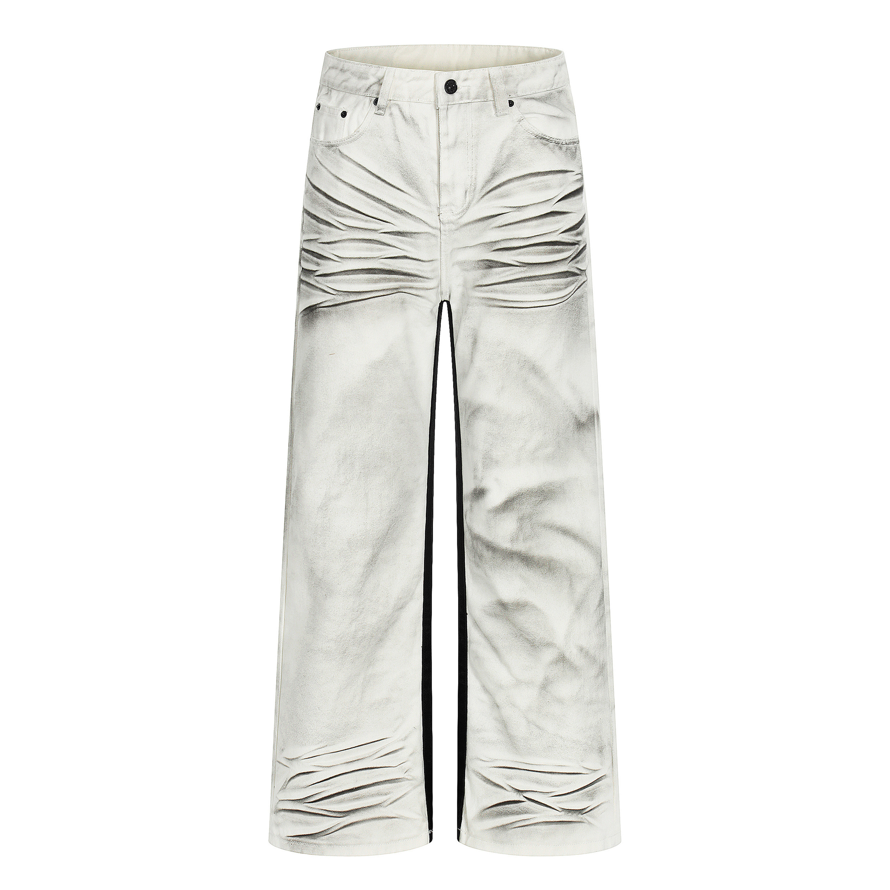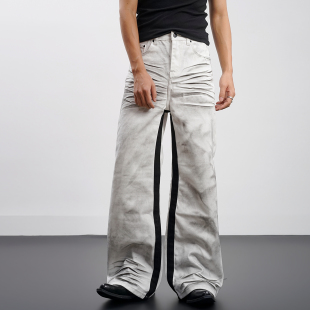型vintage裤 Goinsk 646直筒A字版 立体猫须复古做旧牛仔裤 子 白兽