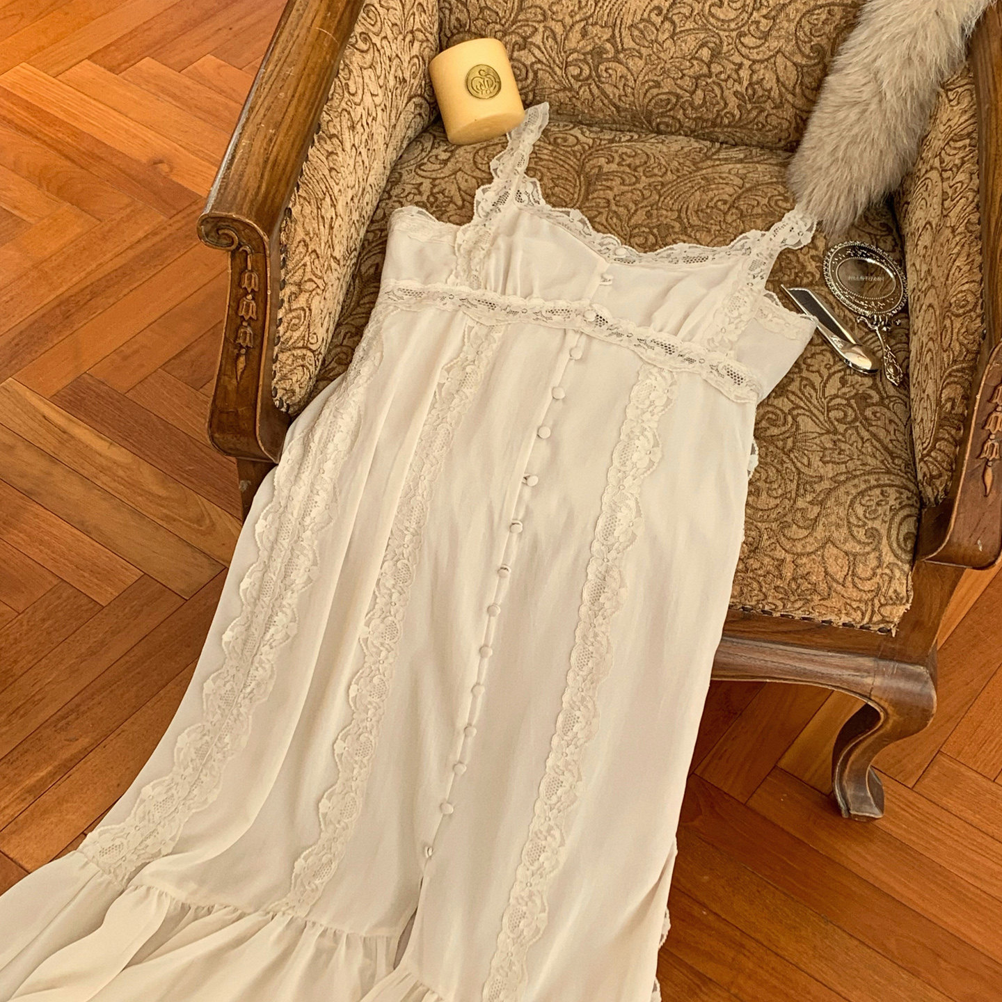 Starry挚爱女神裙 日系甜美雪纺吊带长裙 重工蕾丝花边收腰连衣裙