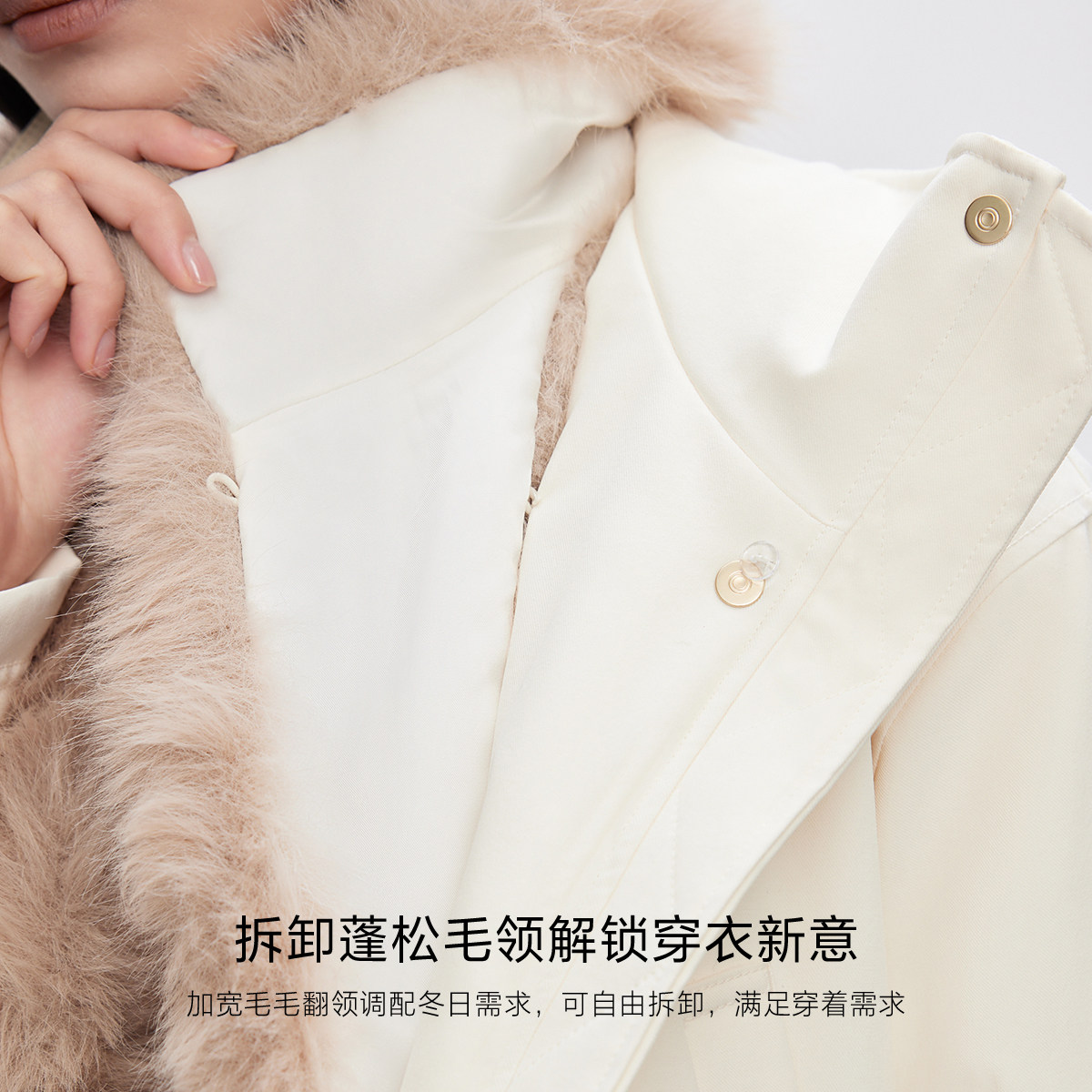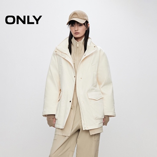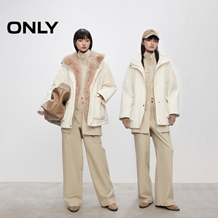 派克羽绒服女 休闲风慵懒宽松可拆卸毛领翻领工装 ONLY2025冬季 新款