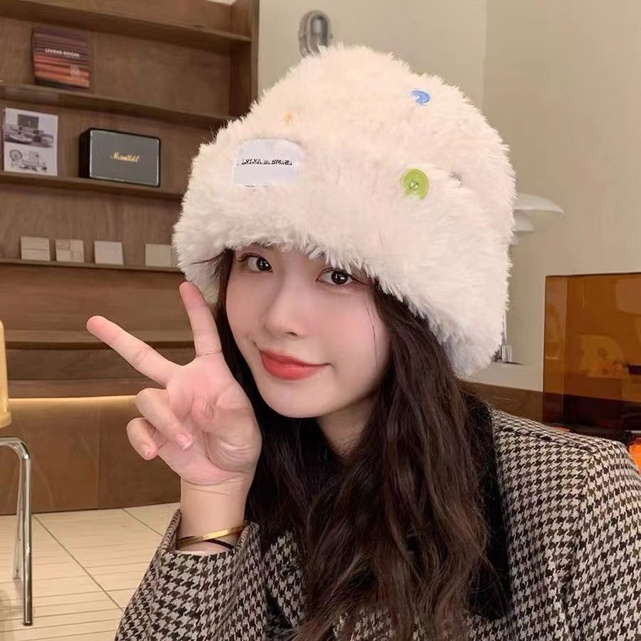 可爱狐狸毛绒帽子围脖一体女秋冬季 加厚防寒保暖骑车两件套护耳帽