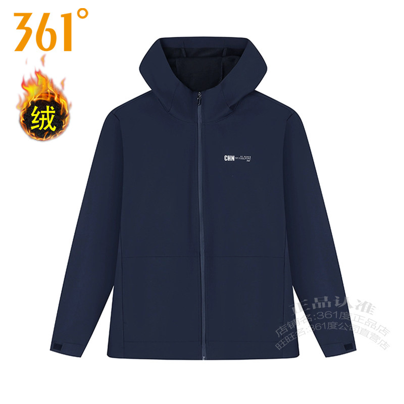 361度男装 361加厚保暖外套4602Q 户外运动加绒里风衣2025秋冬新款