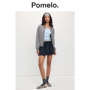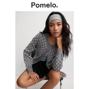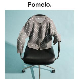 女秋冬 圆领宽松显瘦慵懒风毛衣开衫 Pomelo 通勤风灰色波点针织衫