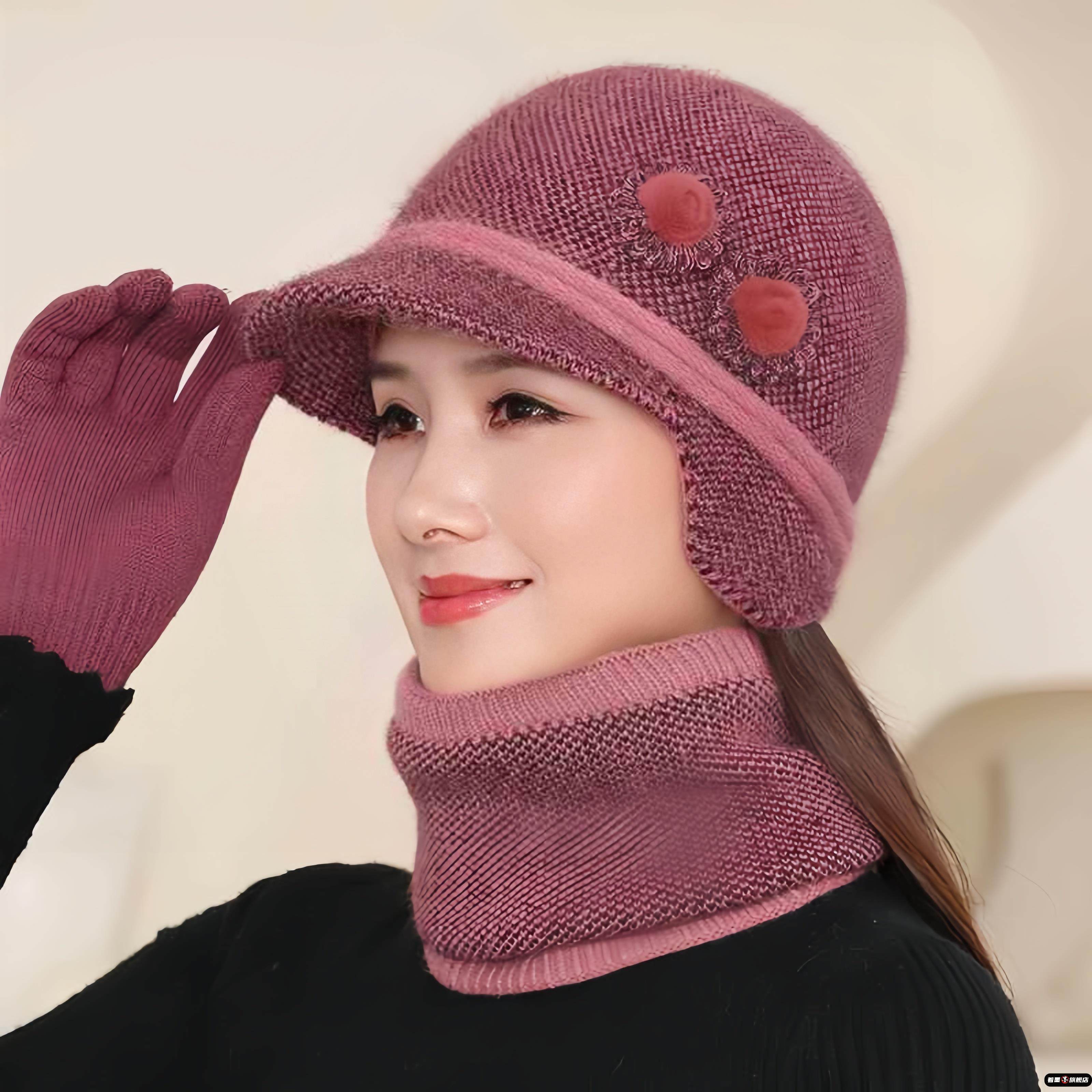 帽子中老年人冬季 妈妈加绒加厚针织奶奶冬天保暖老太太防寒毛线帽