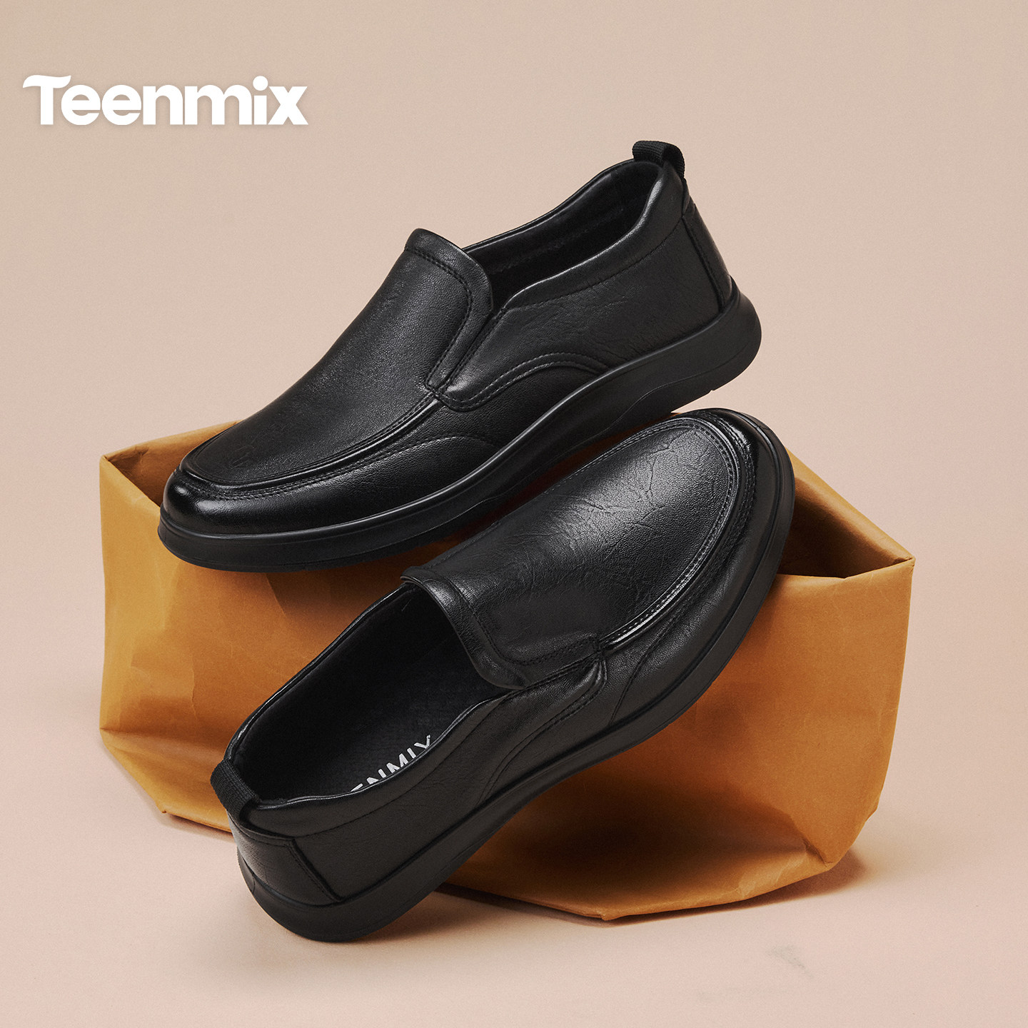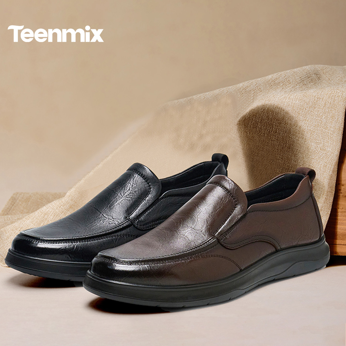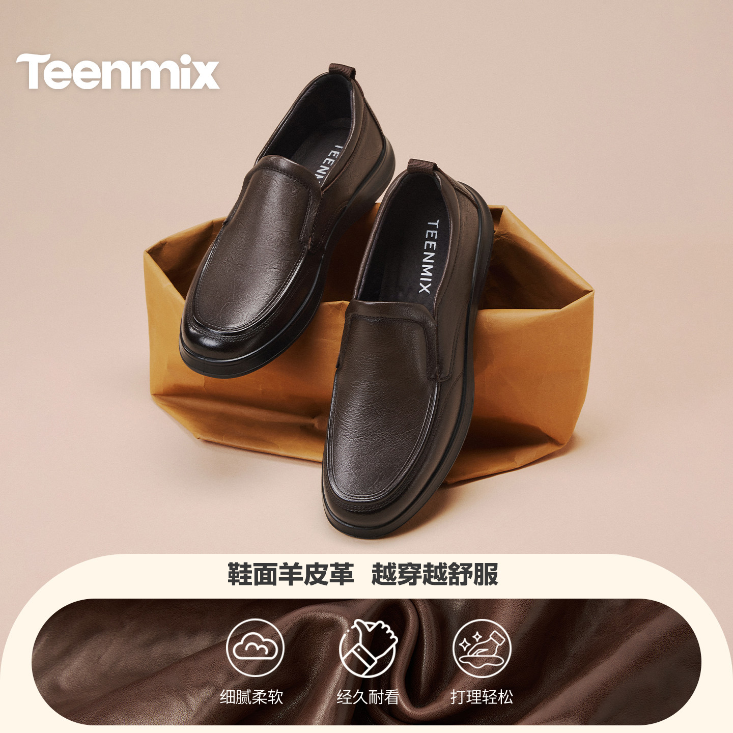 商场同款 天美意复古小羊皮一脚蹬皮鞋 爸爸鞋 商务休闲皮鞋 男春新款
