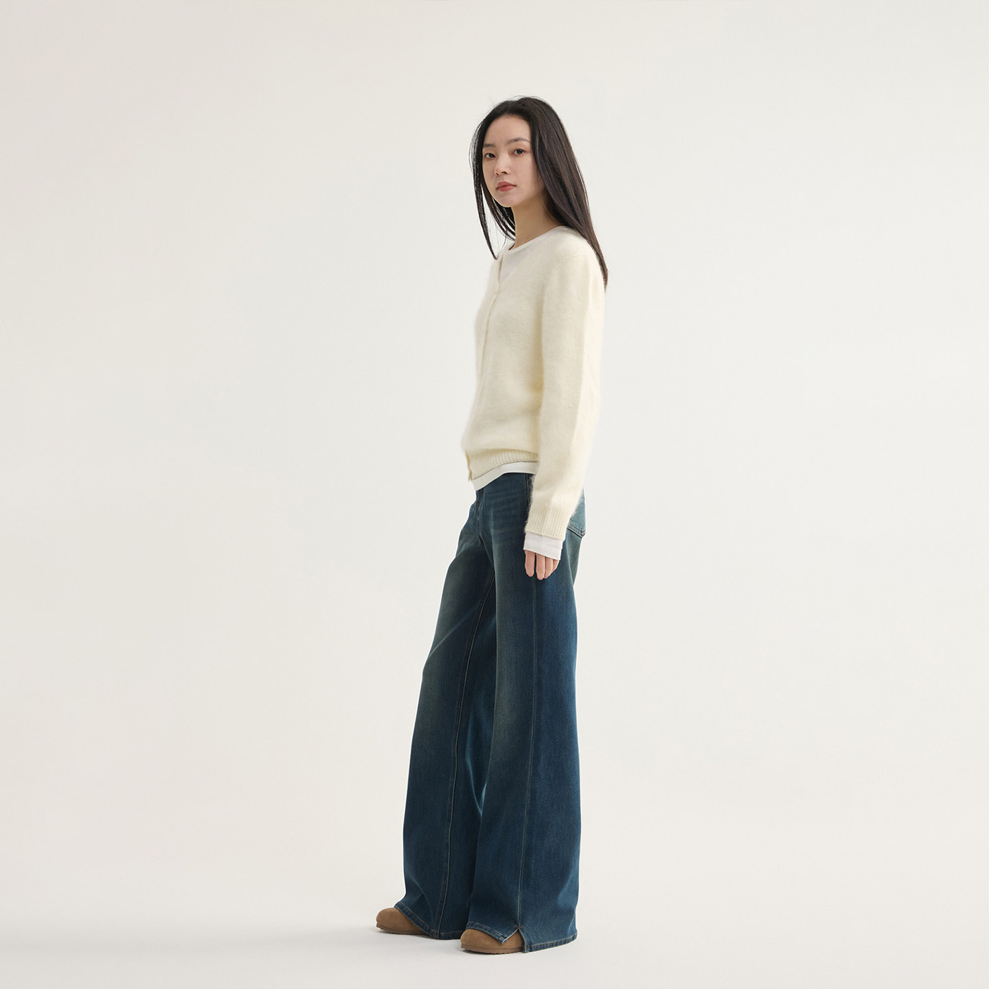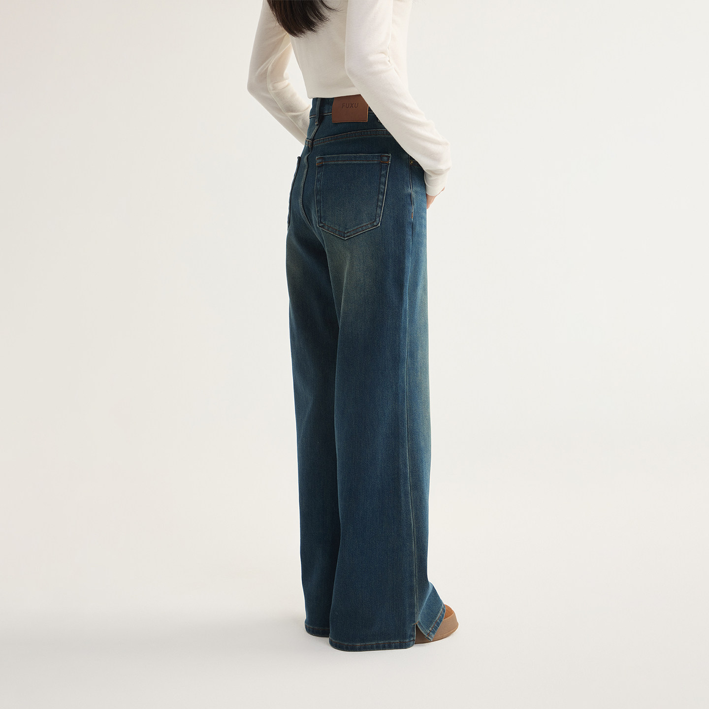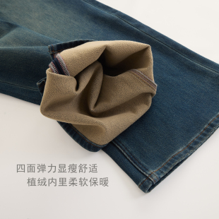 四面弹宽松微喇显瘦牛仔裤 复古高腰喇叭裤 女 加绒加厚 芙蕖FUXU