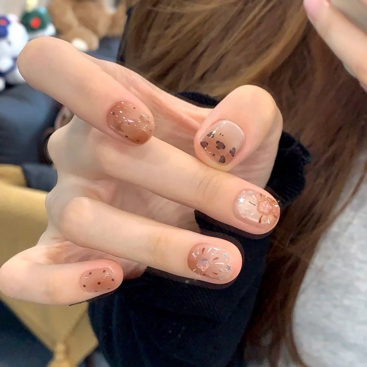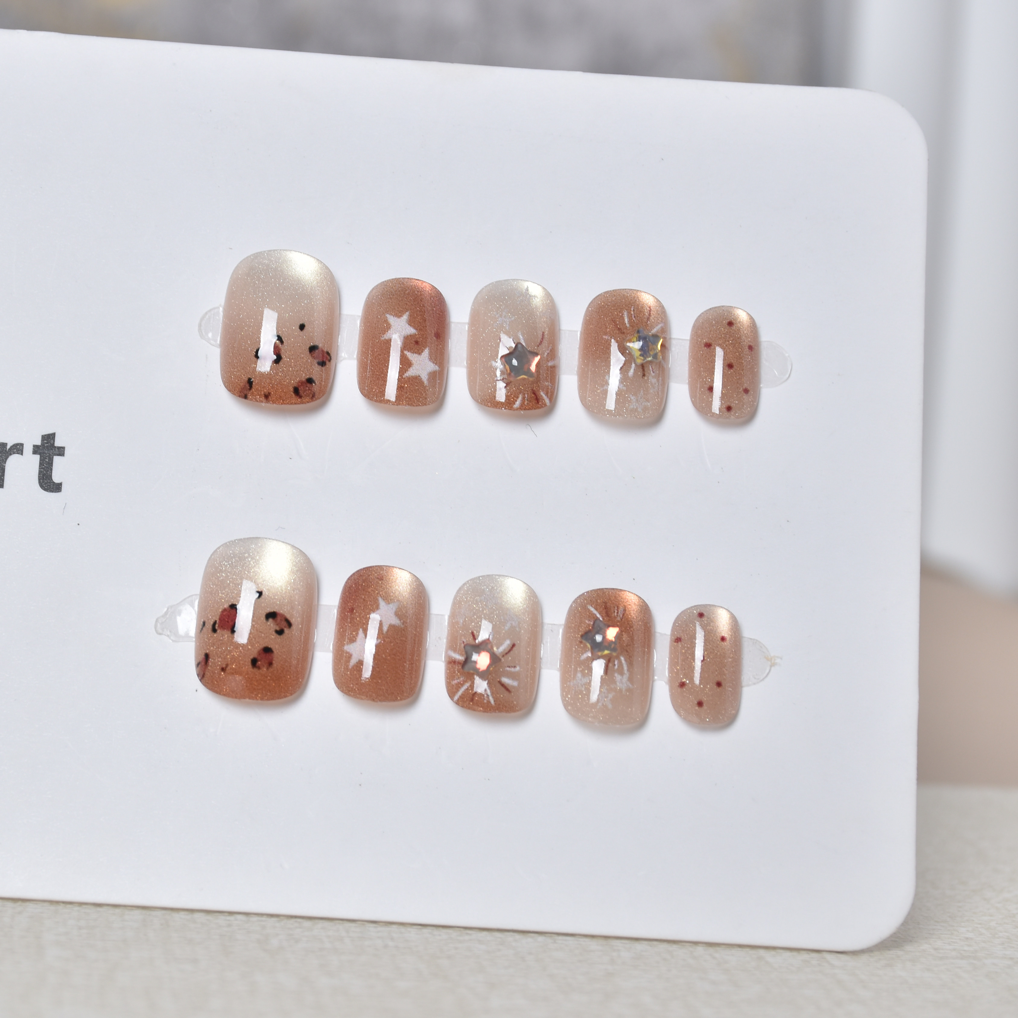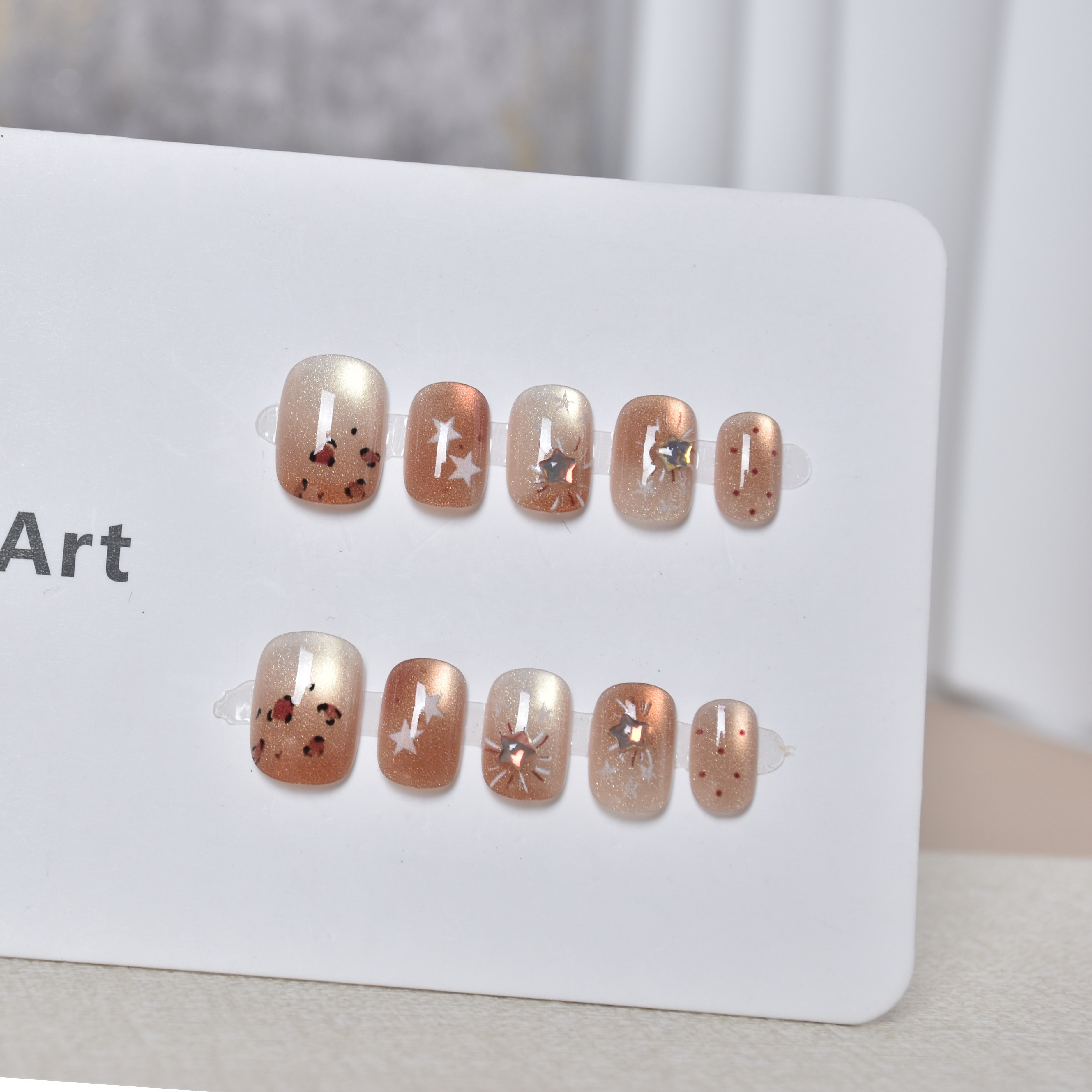 秋冬豹纹星星豆豆甲美甲穿戴甲短款 猫眼甲片手工指甲贴片 2025新款