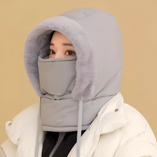 冬季 骑车保暖帽子女护耳加绒加厚防寒面罩围脖一体帽防风骑行帽
