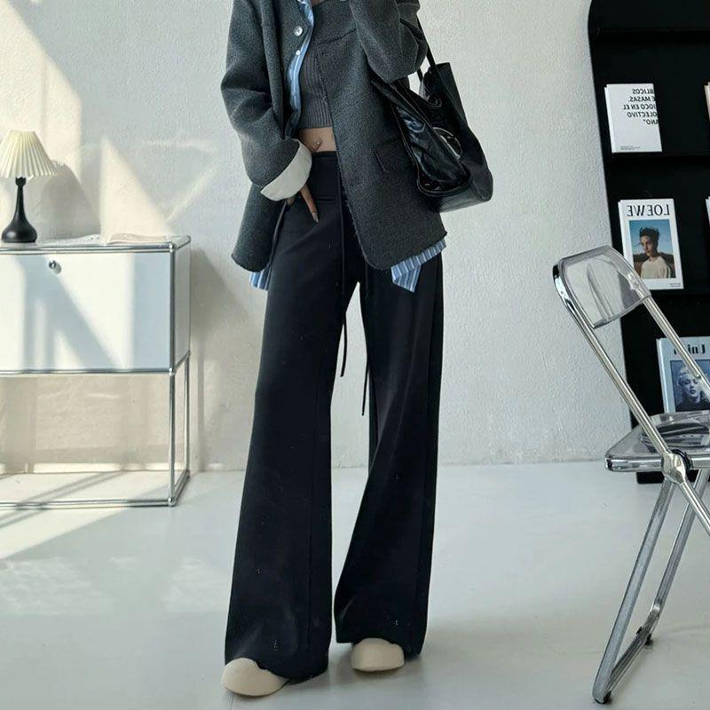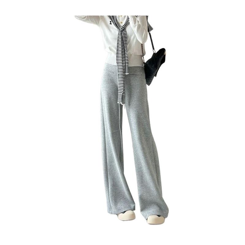胖妹妹显瘦垂感休闲裤 格雷系黑灰撞色阔腿慵懒风格 大码 女秋季 子裤