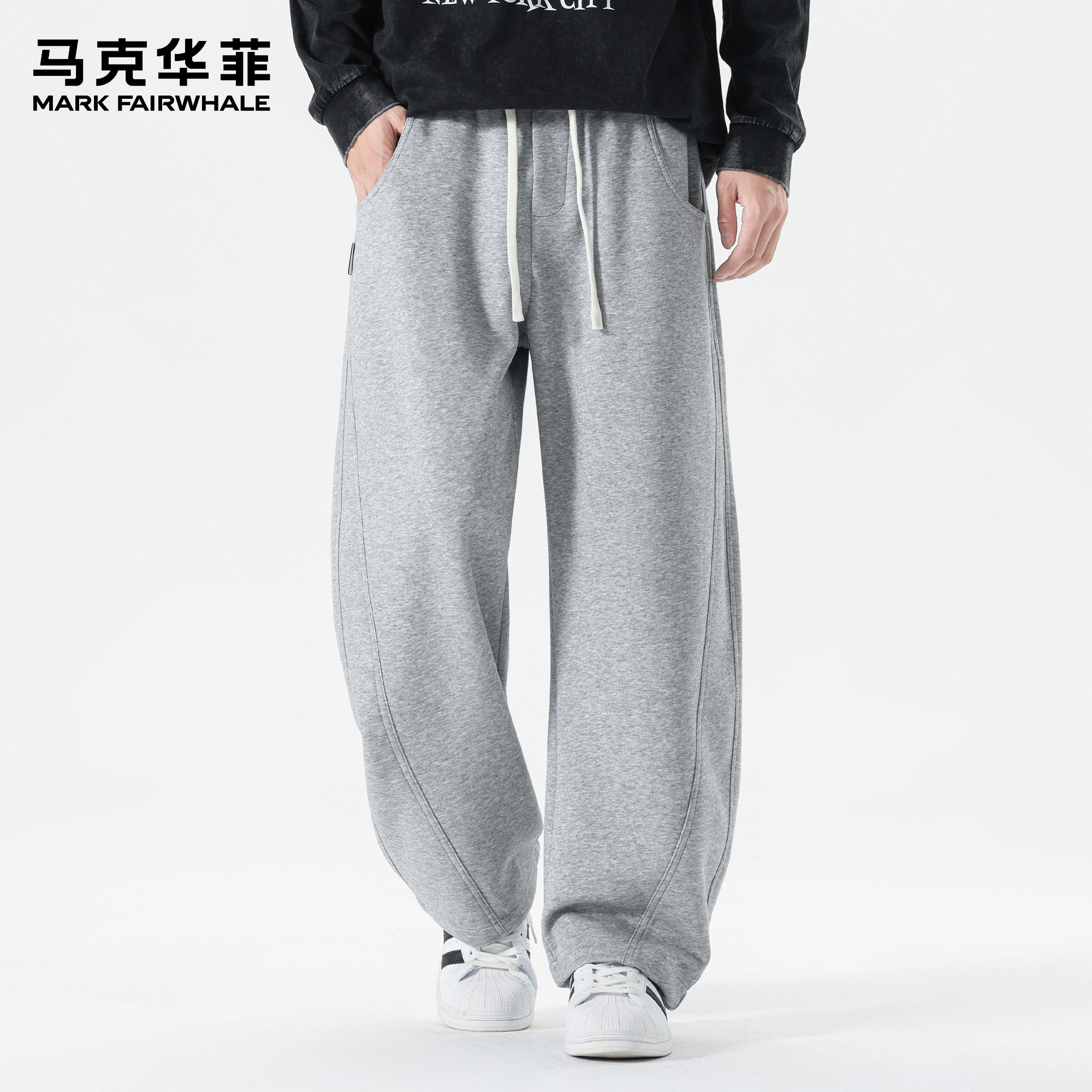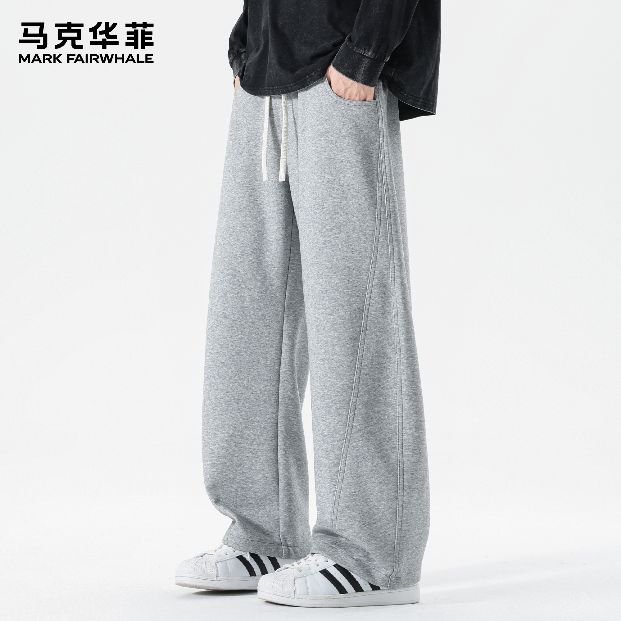 复古解构加绒加厚保暖垂感百搭弯刀裤 潮牌美式 男冬季 马克华菲卫裤