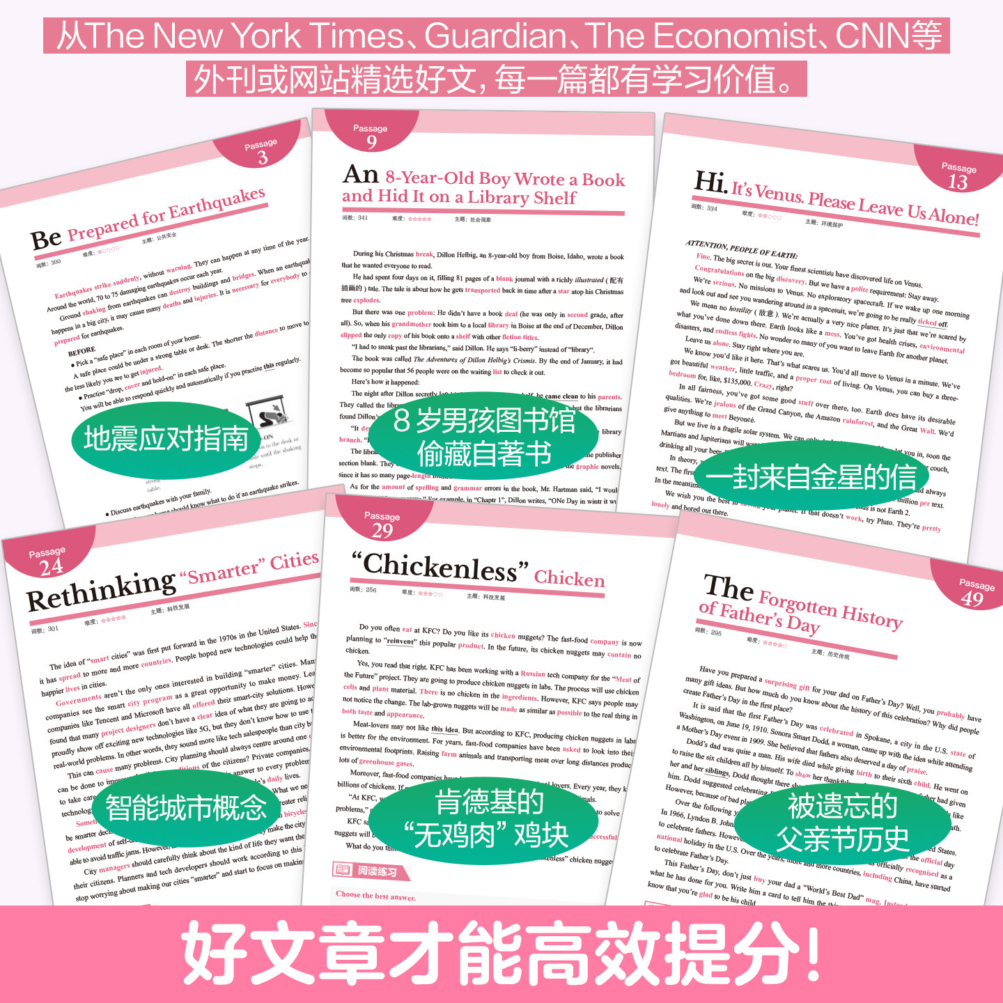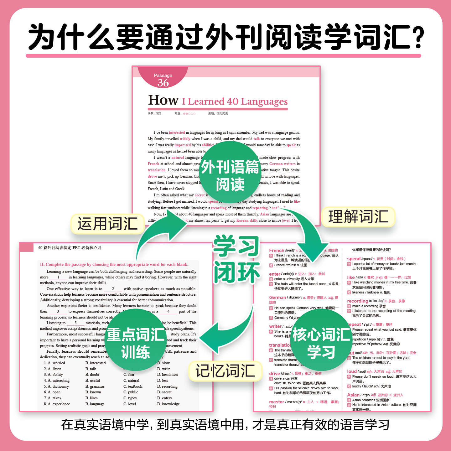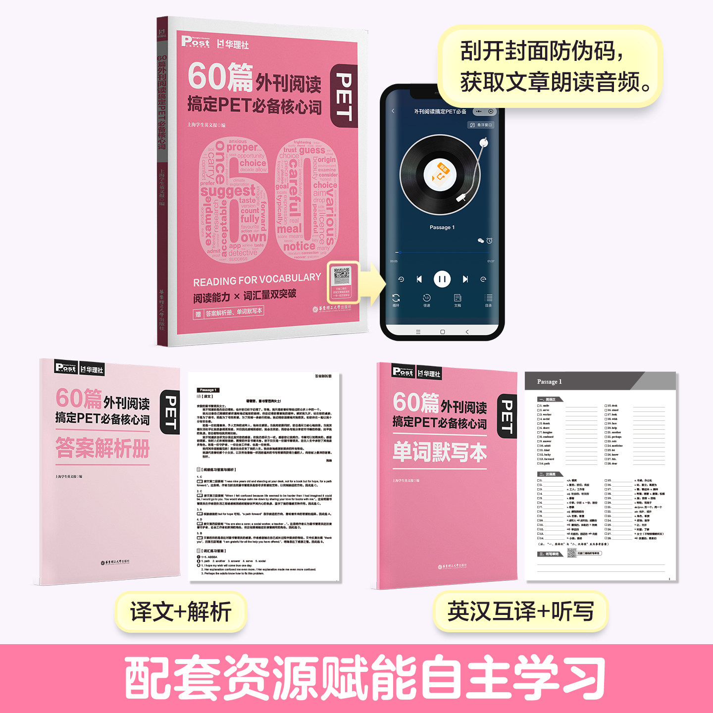 华理社SSP时文阅读搞定剑桥考试核心词汇 60篇外刊阅读搞定PET必备核心词 post外刊文章题源 答案册 中小学生适用 单词默写本