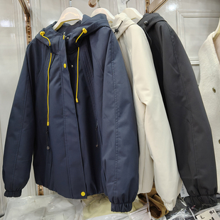 2025秋冬连帽加棉外套女宽松百搭减龄休闲保暖运动风夹克冲锋衣潮