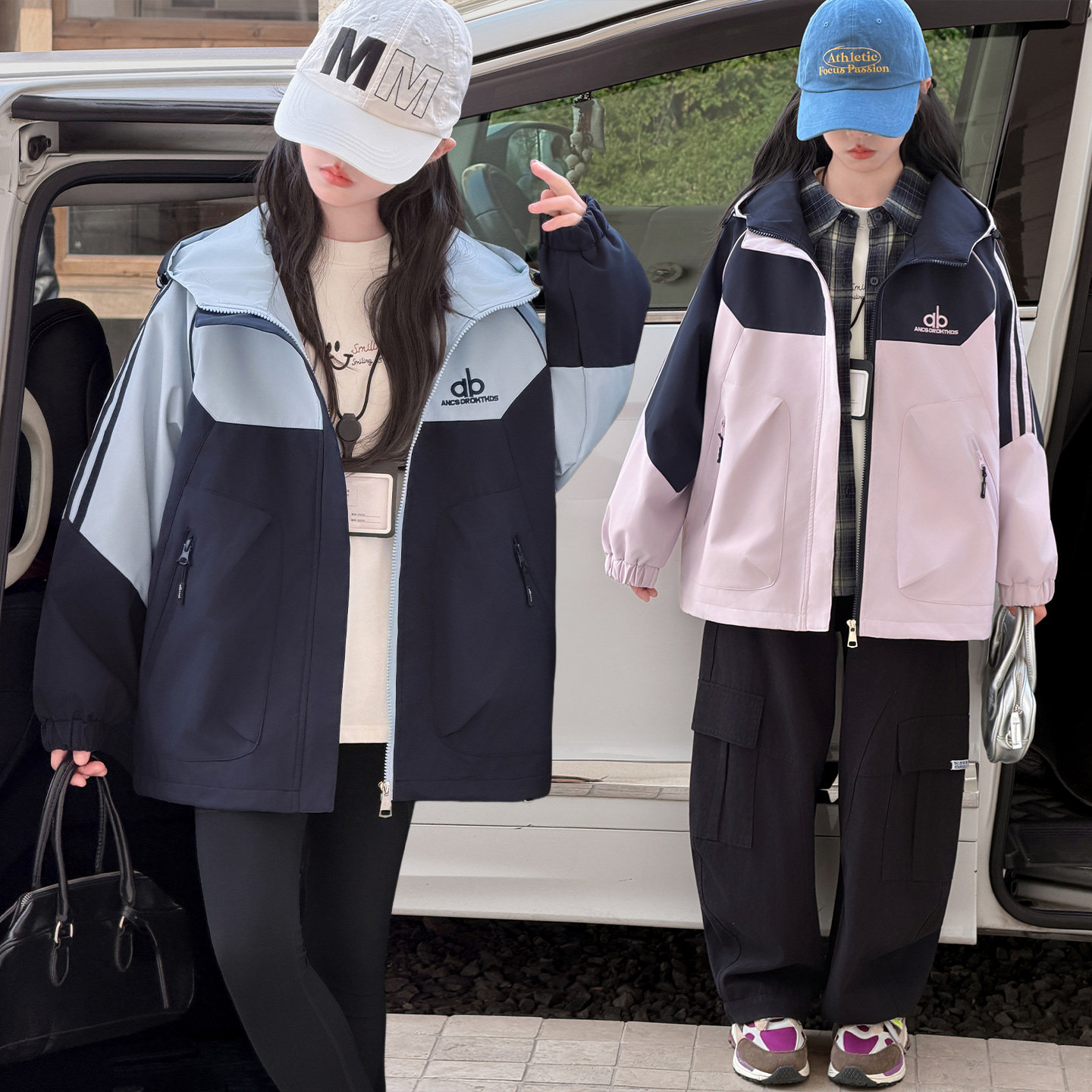 小女孩初中生休闲上衣 洋气儿童装 女童春装 连帽冲锋衣外套2026新款