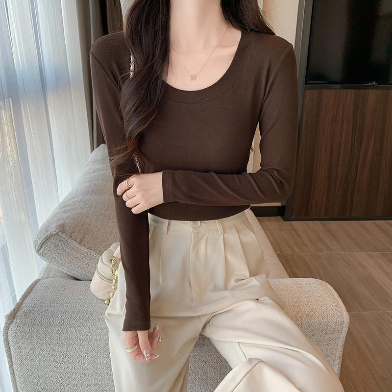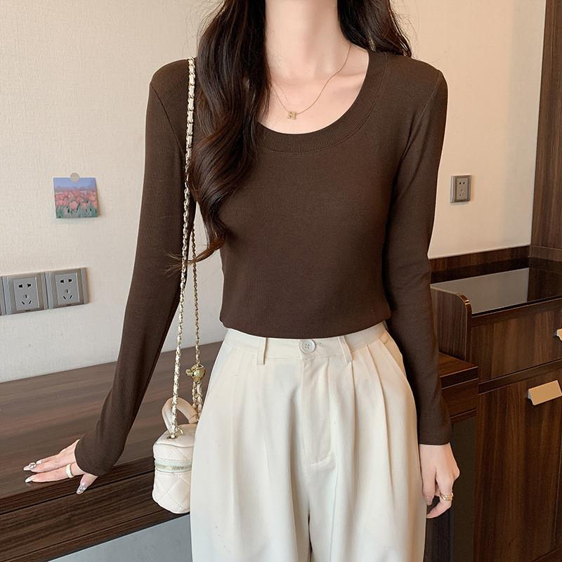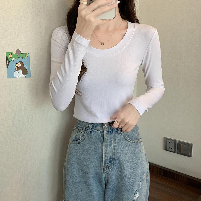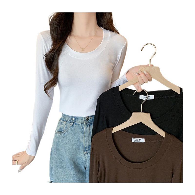 圆领纯色打底衫 实拍长袖 纯色短款 2025初秋新款 上衣 t恤女春秋薄款