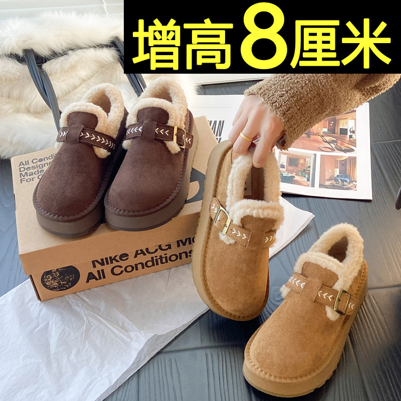 一脚蹬毛毛棉鞋 厚底雪地靴女款 加厚保暖内增高勃肯鞋 冬季 2025新款