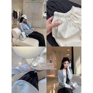 束脚休闲阔腿小个子卫裤 加绒棉裤 女秋冬2025新款 灰色羊羔绒运动裤