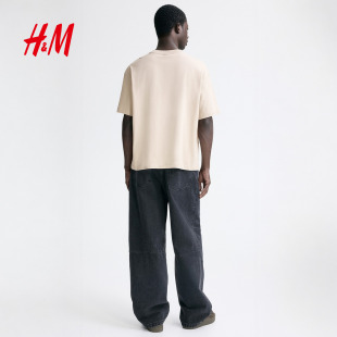 情侣装 美式 宽松版 HM男装 时尚 T恤春季 印花T恤短袖 上衣1313924 女装