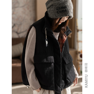 咖咪羽棉马甲女秋冬新款 坎肩流行纯色宽松马夹厚 填充蚕丝棉无袖