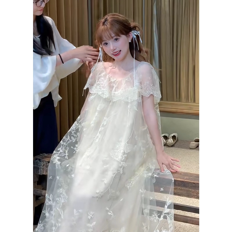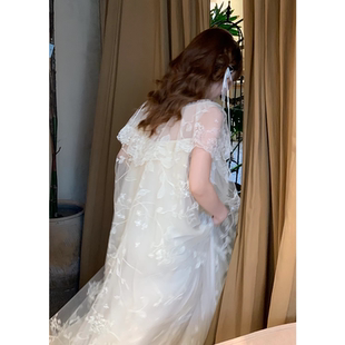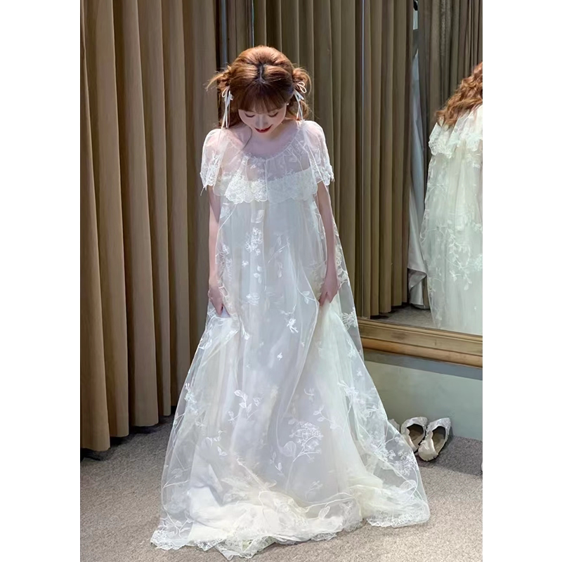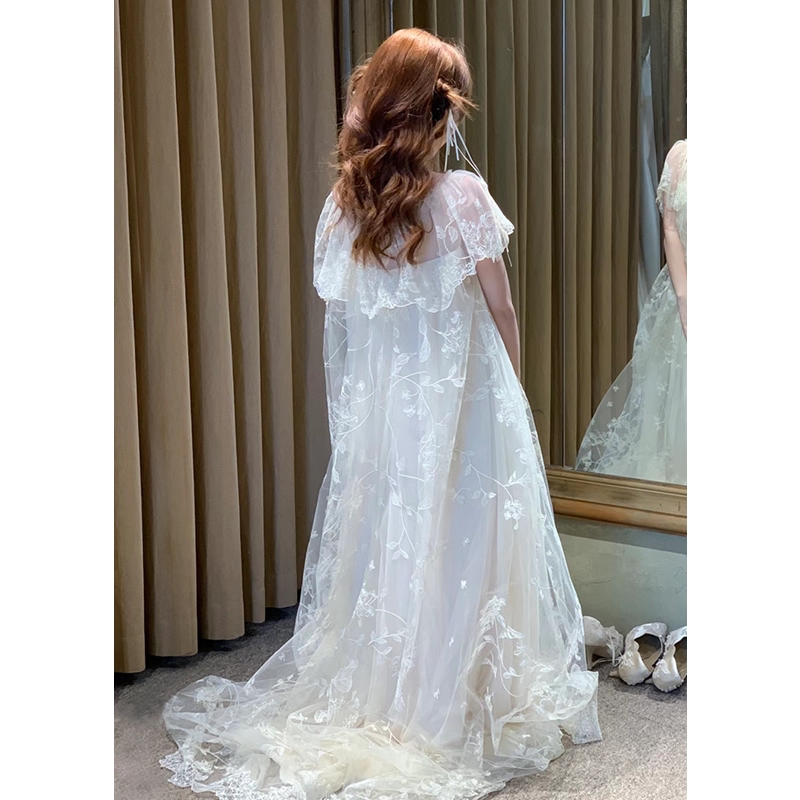 法式 森系绝美轻婚纱小众轻奢蕾丝出门纱超仙订婚礼服裙新娘晨袍