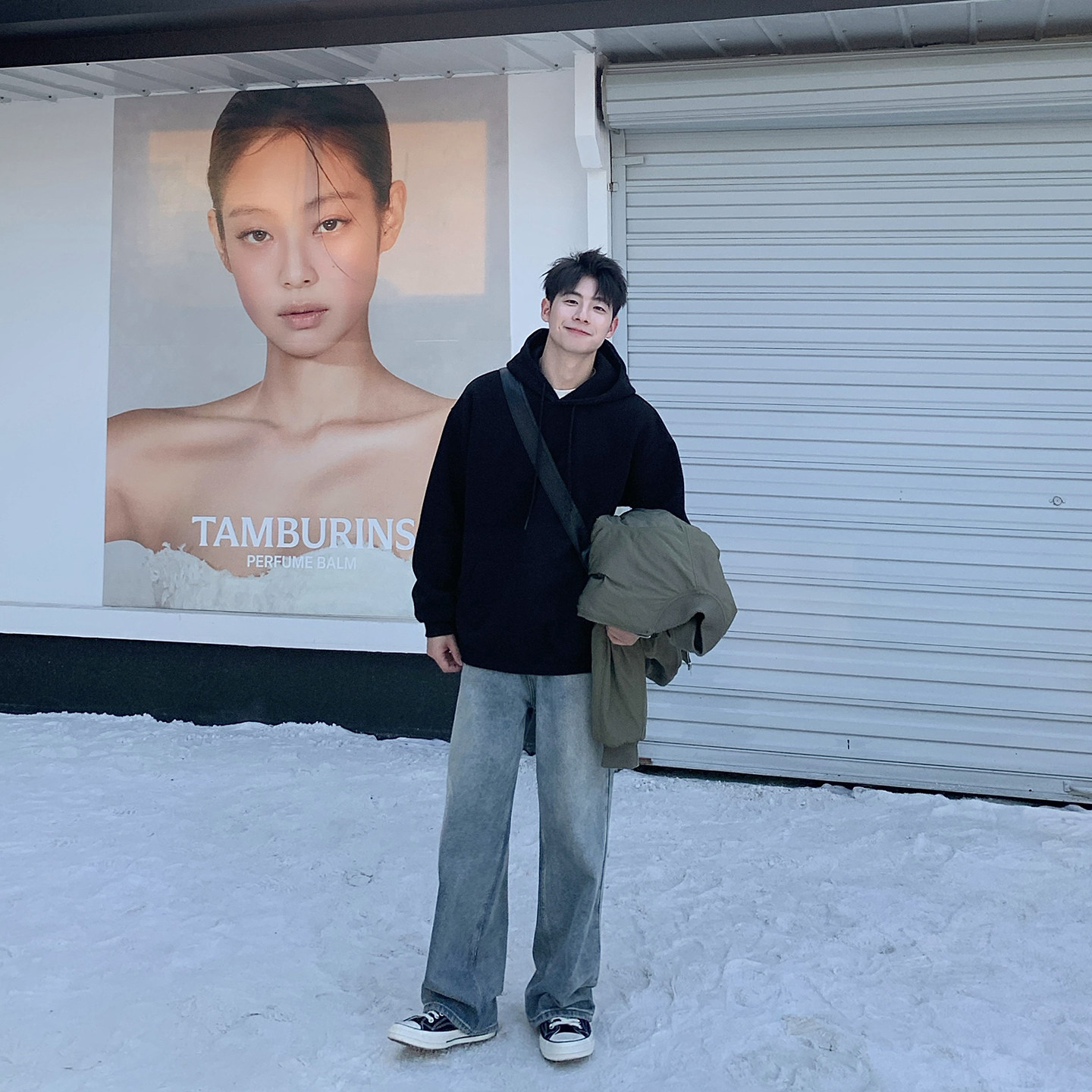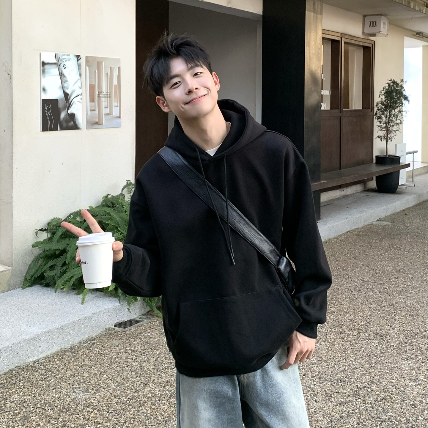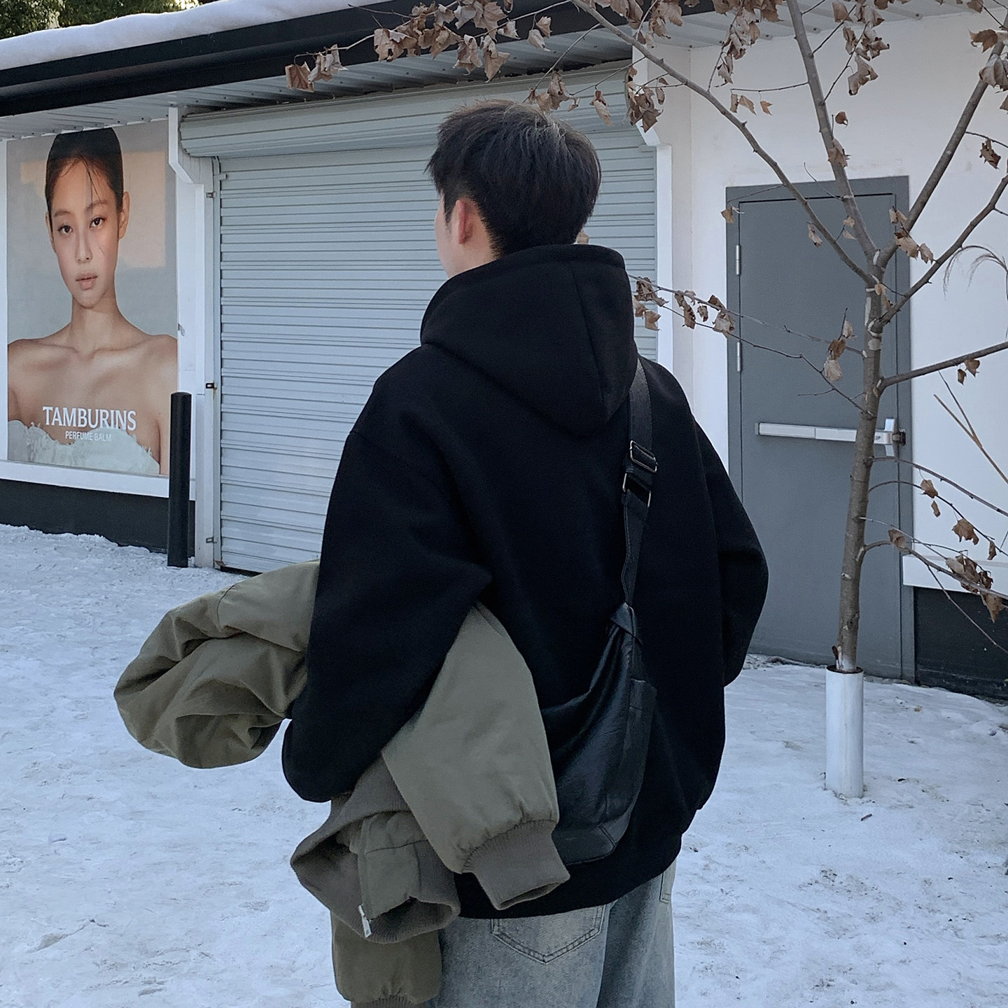 加厚长袖 2025新款 上衣外套 秋冬季 460g重磅黑色加绒连帽卫衣男款