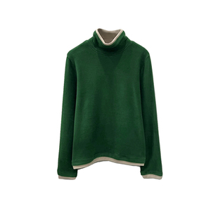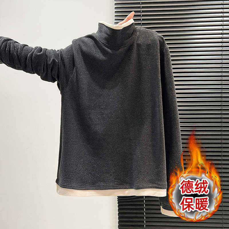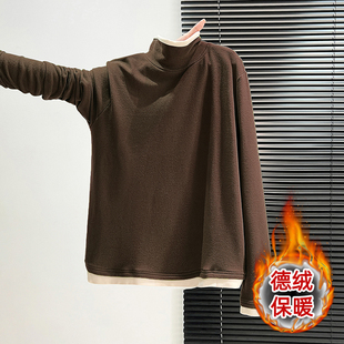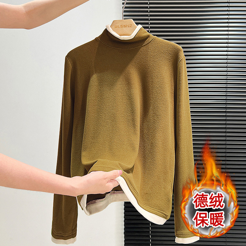 打底衫 秋冬季 高领假两件设计感德绒长袖 上衣撞色女装 遮肉显瘦 新款