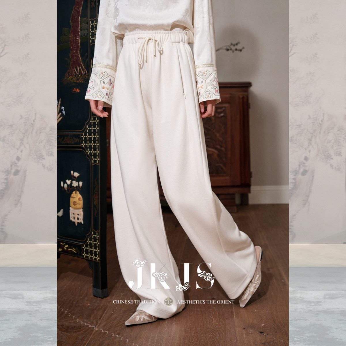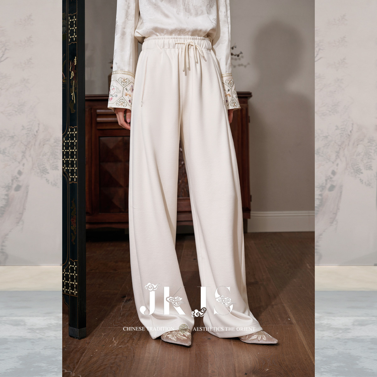 冬装 2026新款 阔腿裤 JKJS 搭配裤 醋酸羊毛休闲裤 新中式 子 云栖缕