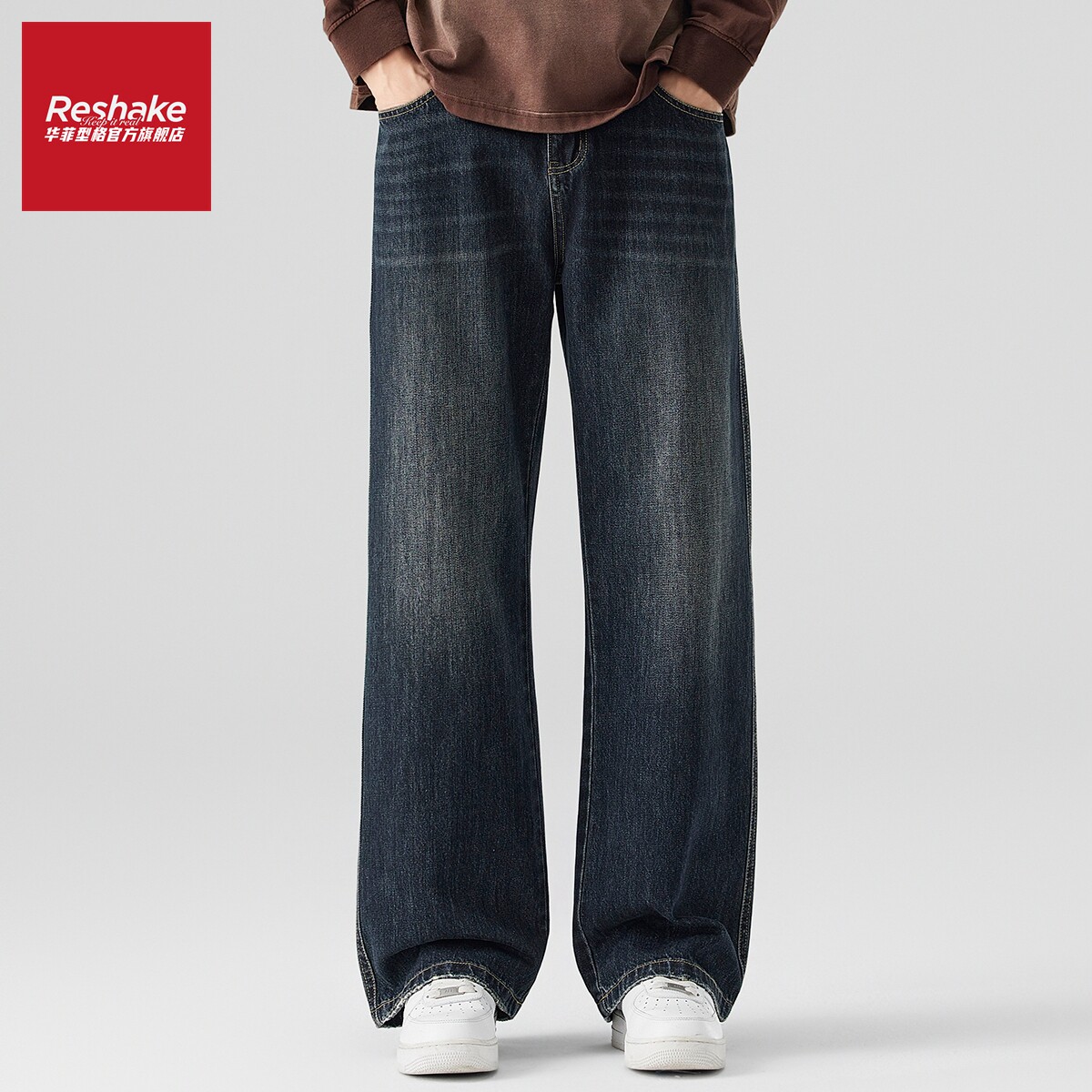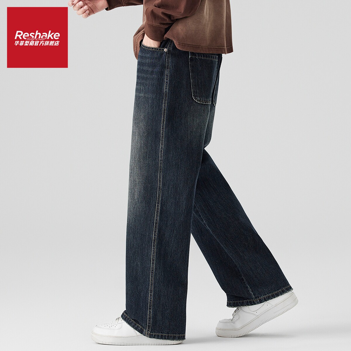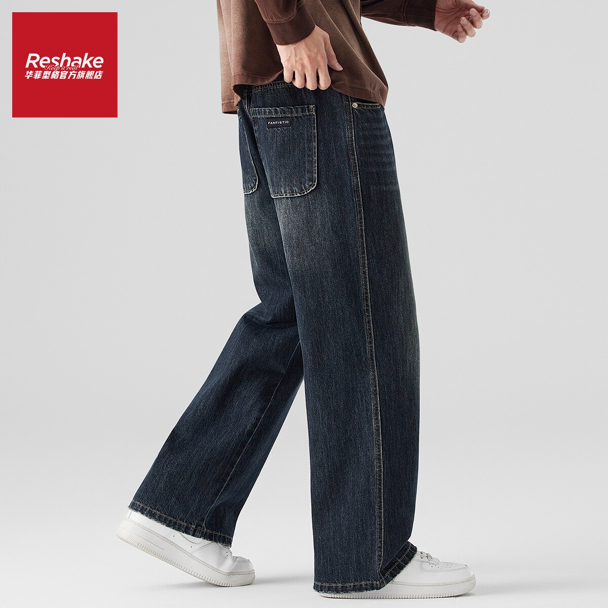 SHAKE 阔腿裤 华菲·型格加绒加厚美式 男冬季 痞帅牛仔裤 FAIRWHALE