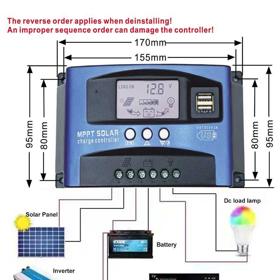 外贸光伏发电太阳能控制器12V24V30A 100A液晶DC太阳能充放控制器