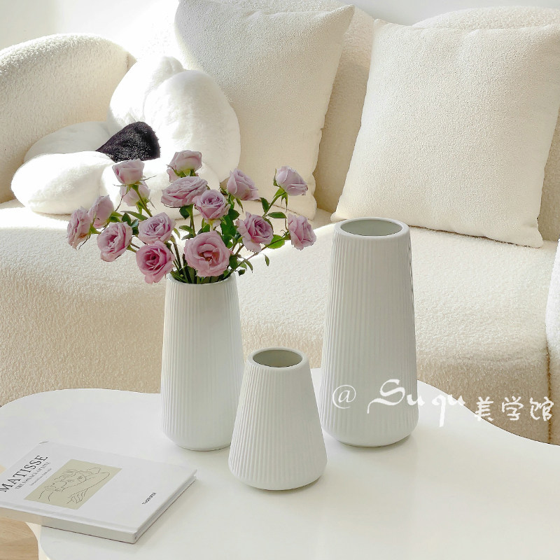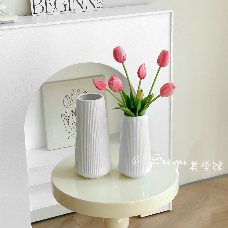 简约白色陶瓷花瓶现代客厅插花摆件餐桌水养鲜花T玫瑰郁金香奶油