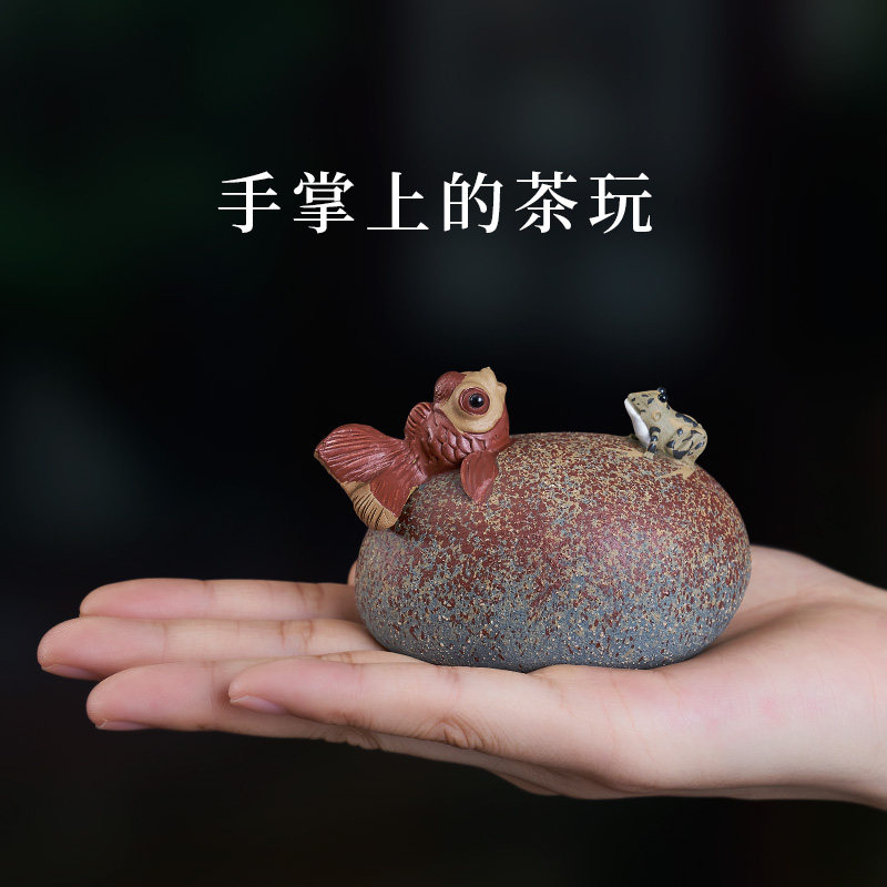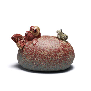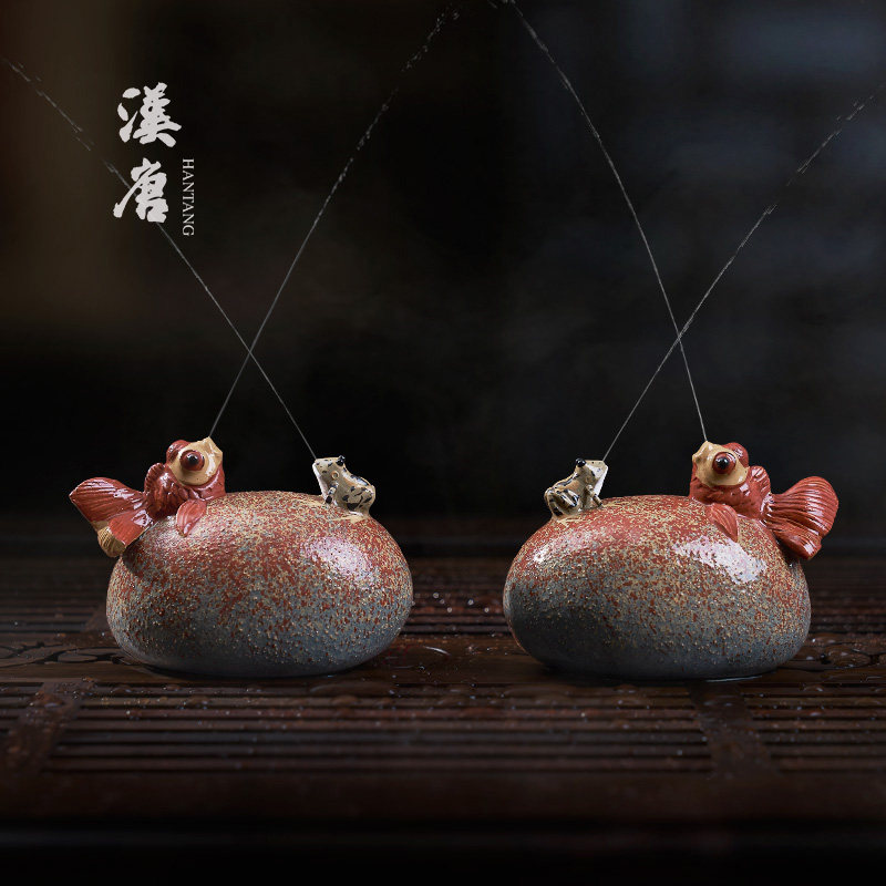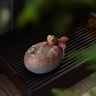 创意变色摇摇椅金蟾茶宠茶玩摆件中式 饰品 鸿运当头金鱼茶具配件装