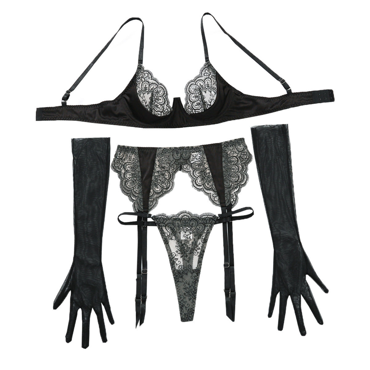 lingerie backless set吊袜带四件套钢托内衣 embroidered Sexy