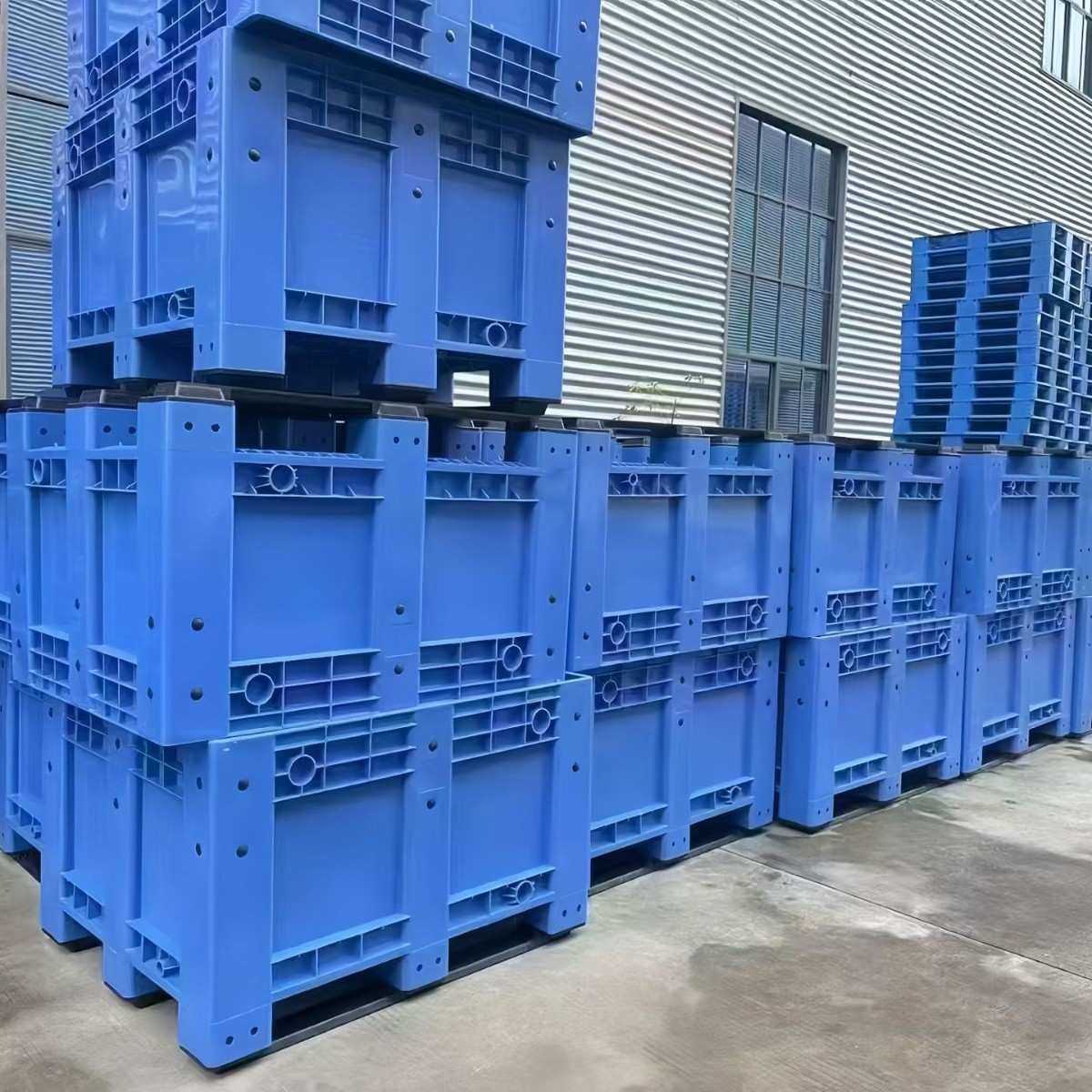 600L加厚带盖塑料卡板箱废料叉车托盘移动周转封闭卡板箱轮子