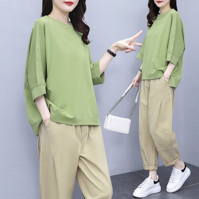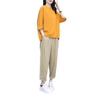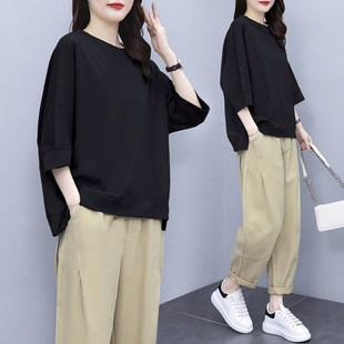夏装 女士夏季 搭配一整套微胖显瘦遮肉职业 休闲时尚 胖妹妹显瘦套装
