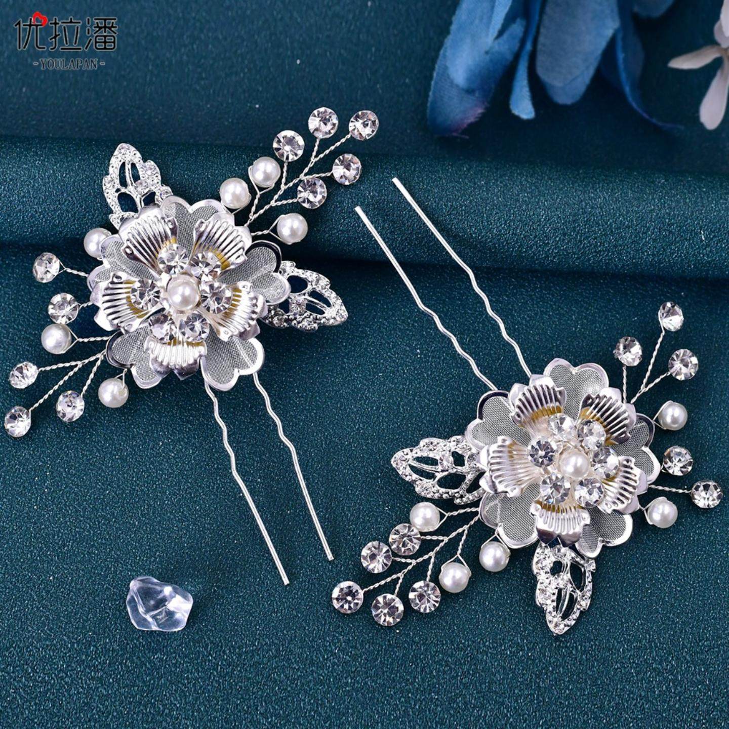 505新娘编发合金头饰品气质手工水钻婚礼配饰型盘发钗新娘头饰
