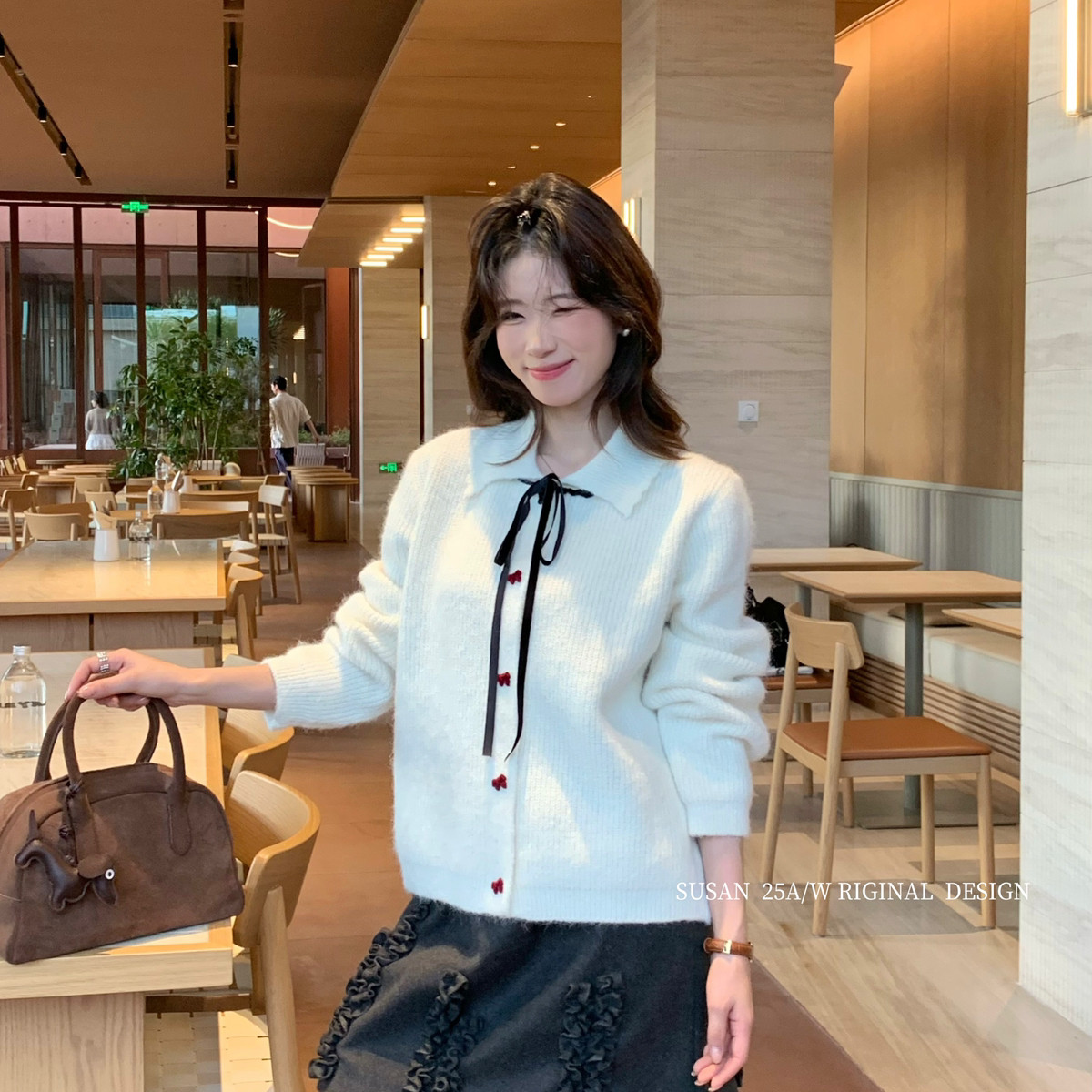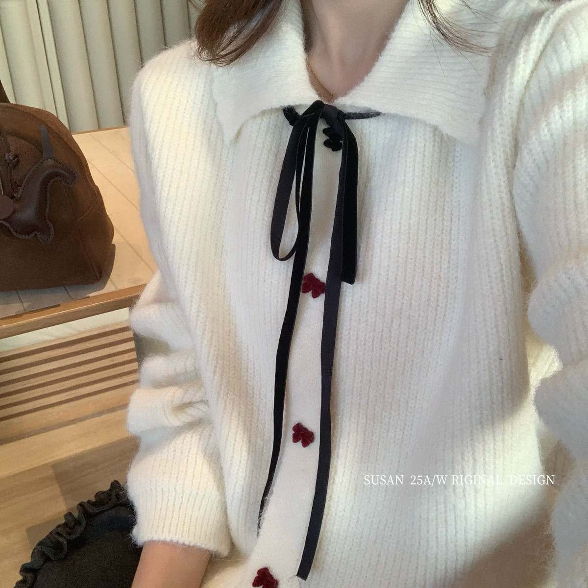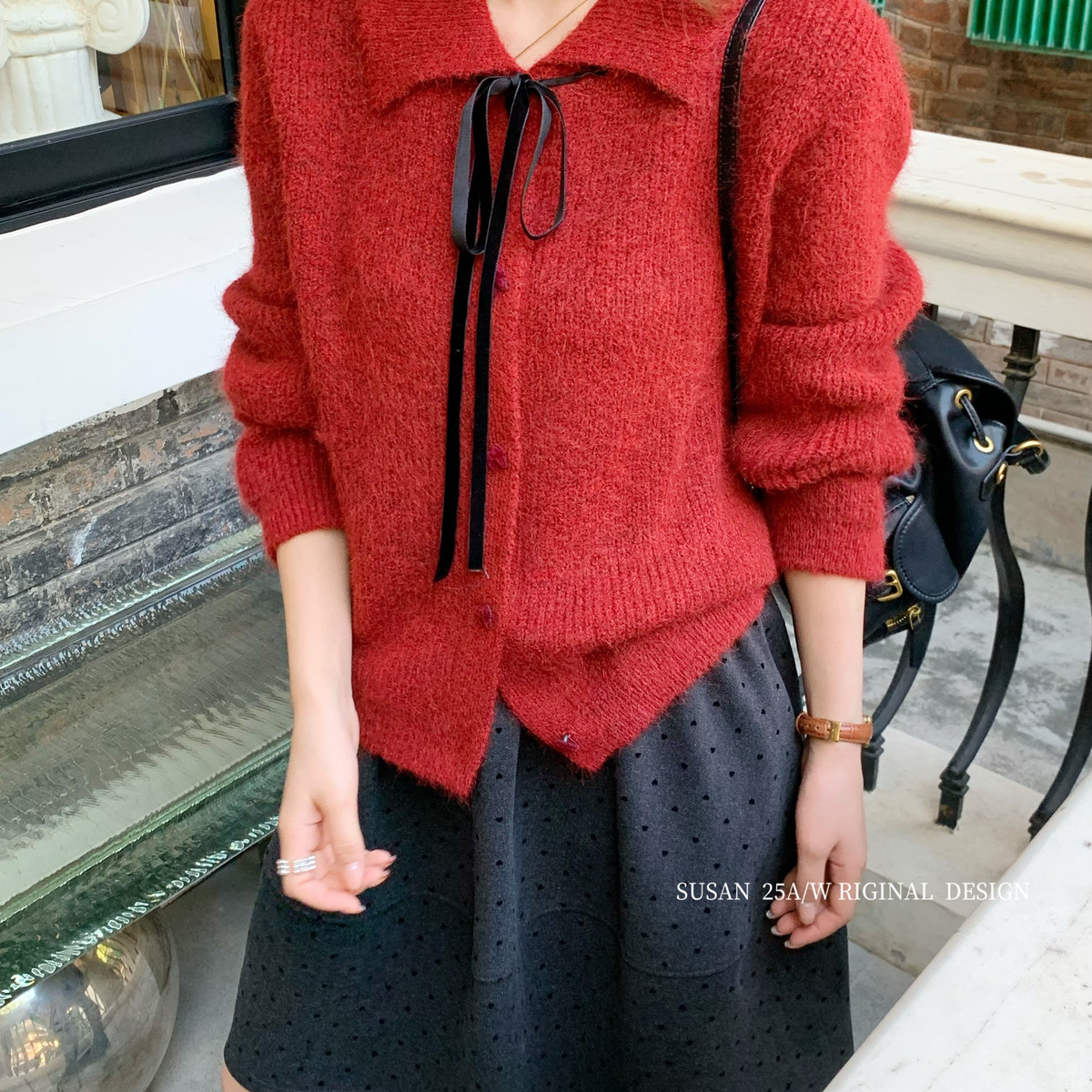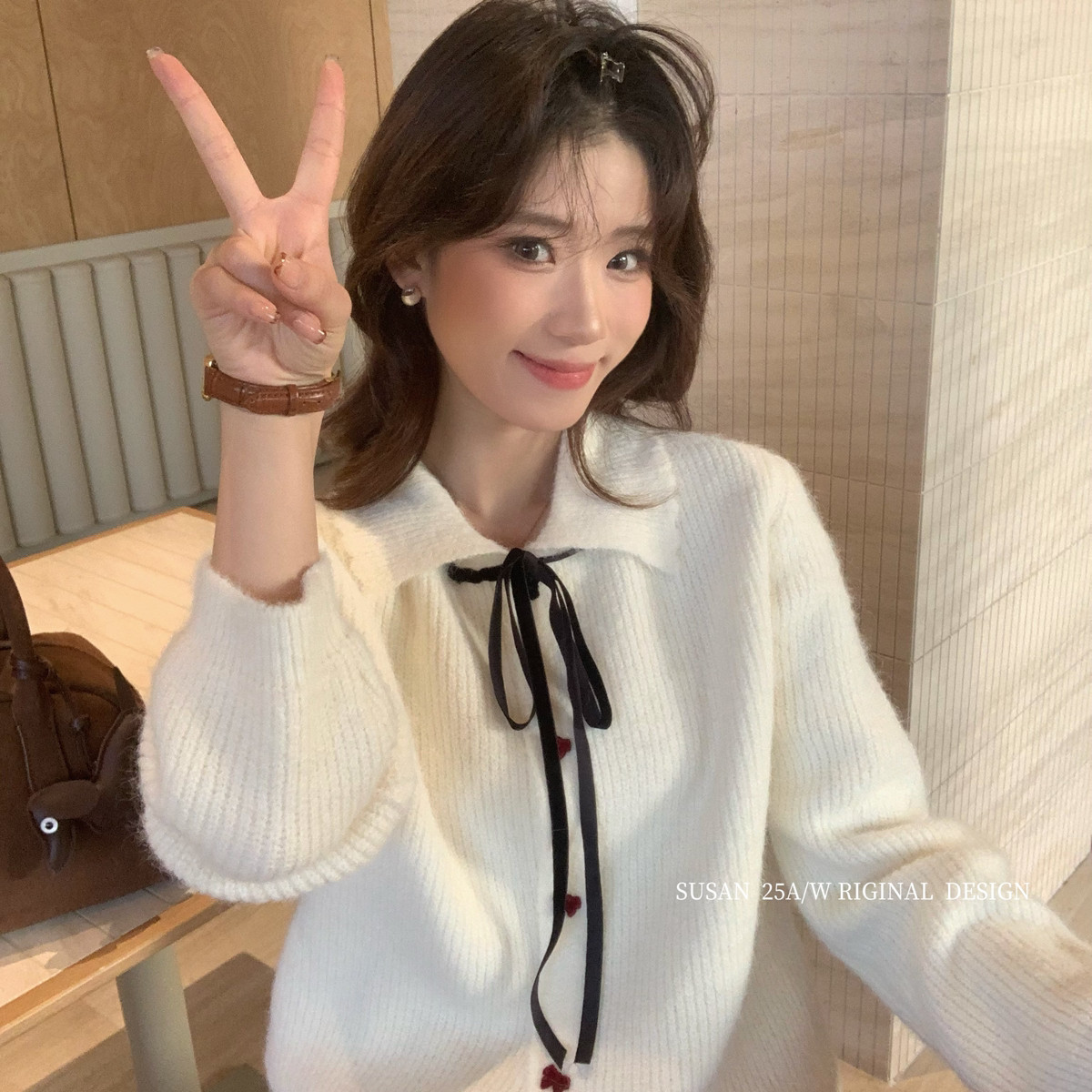 SUSAN 浪漫氛围韩系温柔气质翻领绑带百搭加厚保暖毛衣