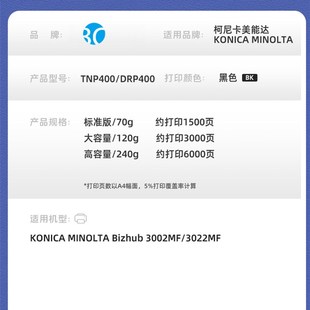 适用柯尼卡美能达3022MF硒鼓TNP400粉盒Bizhub 3002MF打印机墨盒