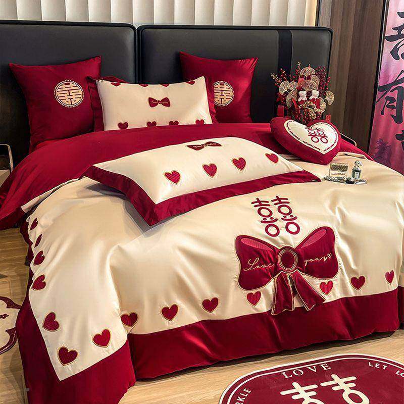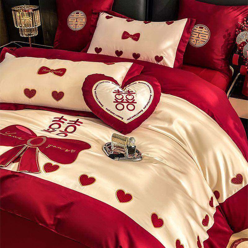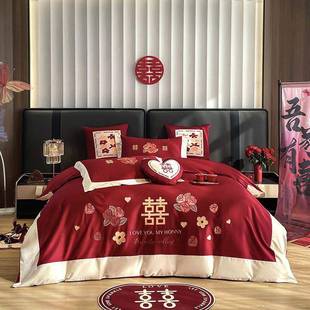 棉结婚被子全套纯婚庆四件套带被褥一整遥伊供应棉套新婚婚房长喜