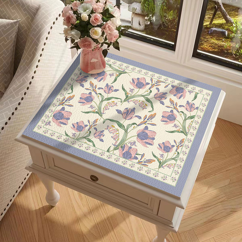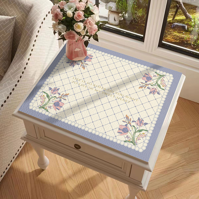北欧风郁金香床头柜防尘垫免洗防水防油台面皮革垫化妆台面垫盖布