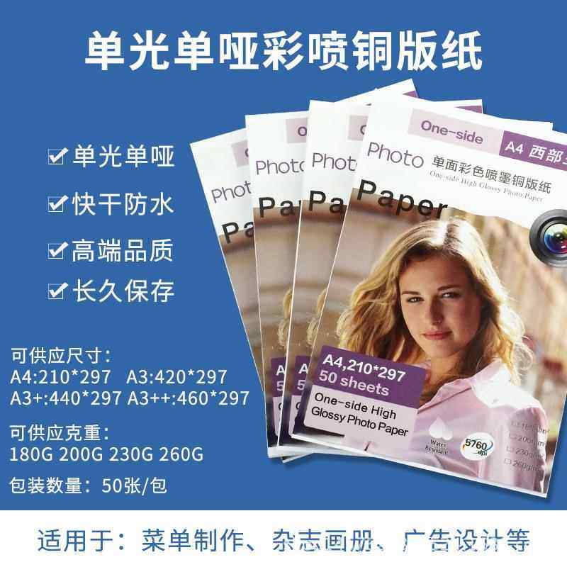 A4A3A3 纸180g200g230g260g高光相纸喷墨照片纸 单面彩喷铜版